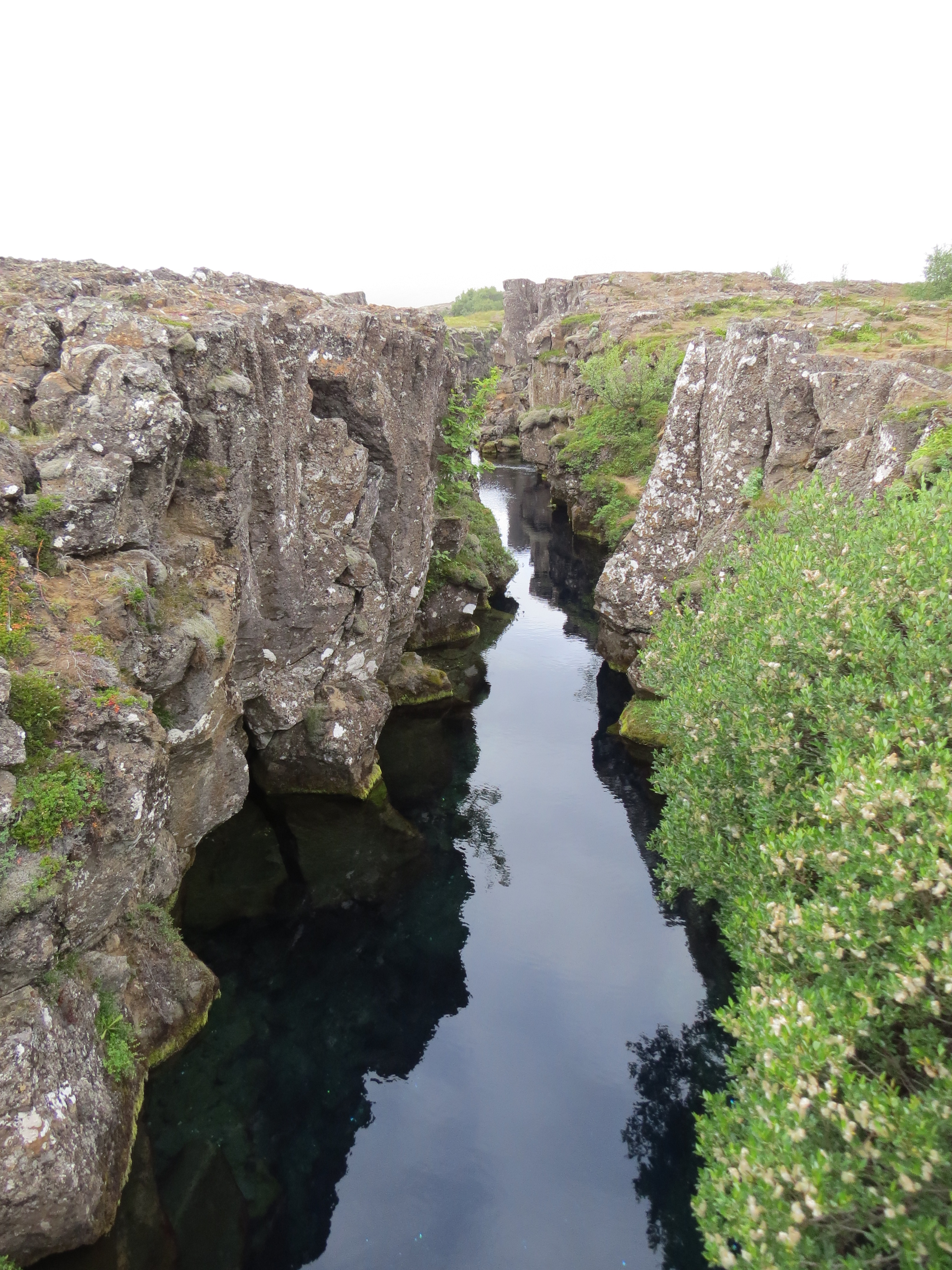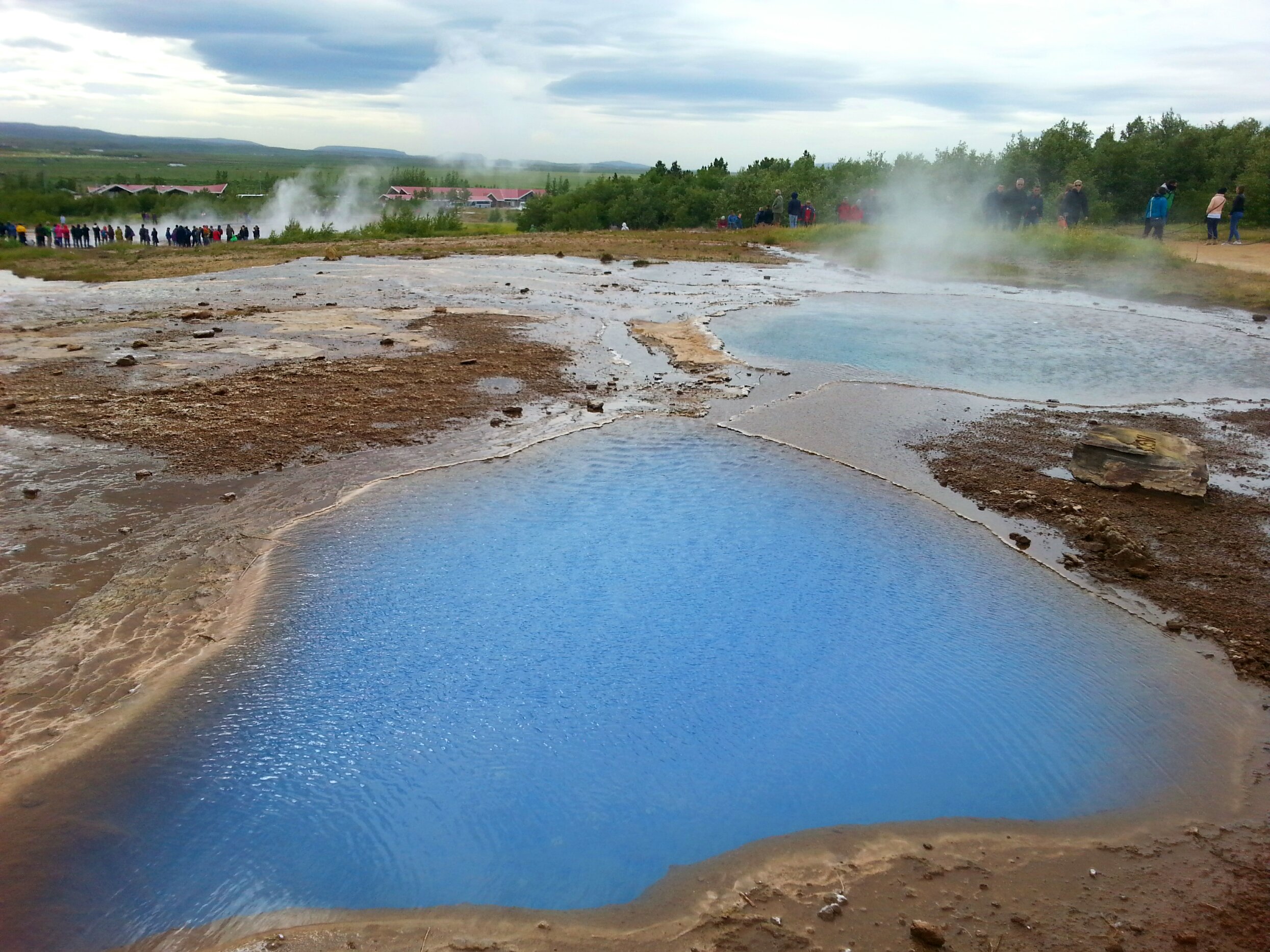 Petit tour à Geysir et son geyser. Beaucoup de monde, le geyser est tout de même impressionnant. Attention quand, il y a du vent, il faut se mettre du bon coté, autrement c'est la douche assurée. Il y a deux ou trois marmites avec de l'eau d'un magnifique bleu On prend la direction parc Thingvellir avec son lac, sa faille et le lieu du rassemblement originel d'un des plus vieux parlements du monde en 930.