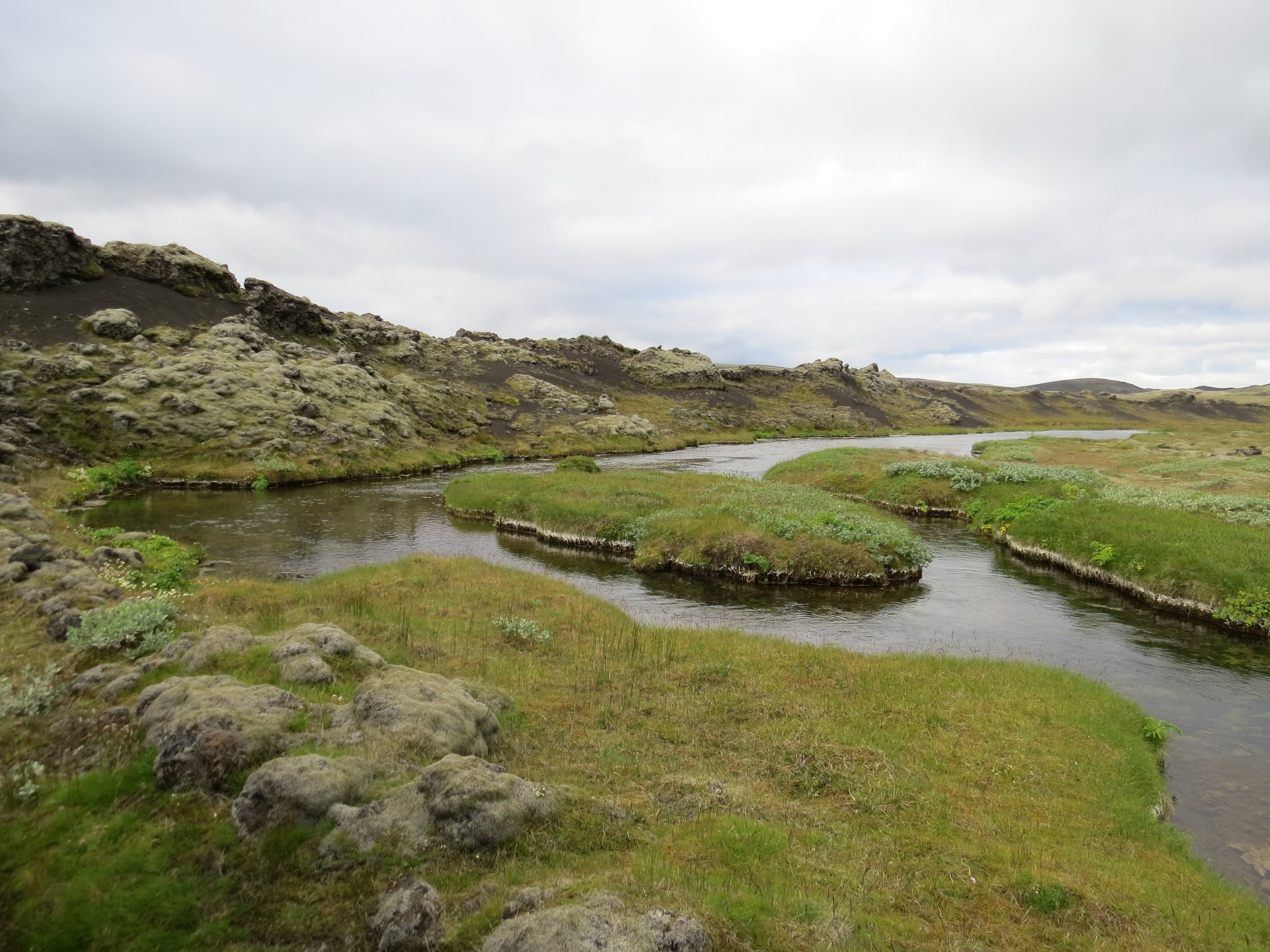 Après une nuit venteuse passé à coté du canyon de Fjaðrárgljúfur, on part sous le soleil direction le Lakagigar ou plus simplement le Laki. On part par la F206, le paysage est verdoyant. Aprés le passage de quelques gués, l'environnement est plus aride On arrive au parking du Laki, après un petite ascension nous sommes au sommet . La vue est magnifique, on aperçoit l'alignement des 115 cratères qui se sont formés lors de l’éruption. Certains historiens pensent que cette éruption est un des éléments déclencheur de la révolution de 1789. En effet, elle a eut lieu en 1783, s'en est suivi des hivers très rudes avec de mauvaises récoltes. Cela contribua de manière significative à la pauvreté et à la famine en France, et à une révolte du peuple. Le chemin du retour se fera par la F207 en faisant une boucle. Cette piste est magnifique. je conseille de la "garder" pour le retour afin de finir la journée en beauté. Les paysages sont irréels, on se croirait sur un autres planète. Il y a un gués avec un environnement magique, on s'attend à voir sortir des lutins de l'eau ou d'un talus. A la fin de la boucle, on rejoint la F206 pour revenir à la réalité sur la route N1. Mais les paysages sont aussi surprenant, comme cet hameau et sa cascade. Avant de se rendre à notre point de chute pour la nuit, on fait un petit crochet pour admirer une particularité géologique: Kirkjugólf et ses colonnes basaltiques rabotées par l'érosion Temps ensoleillé le matin, légèrement couver en fin de journée.
