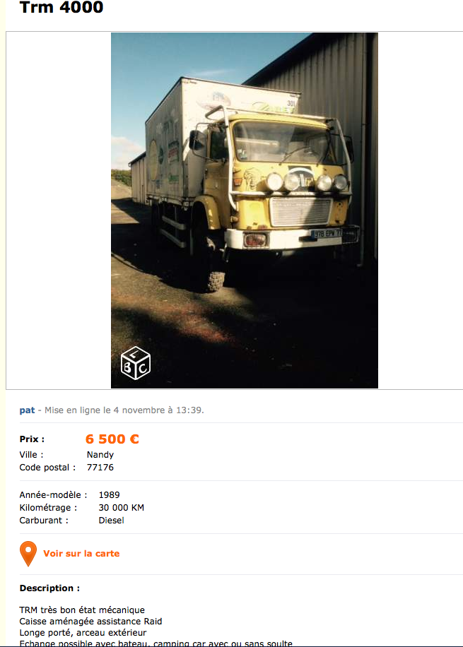 j'ai repérés un joli pépères a un bon prix je pense par contre je suis dessoler je ne sais pas faire n'y les capture d’écrans n'y relever les n° annonce du bon coin je vous post celle ci au cas ou? Saviem double cab.5 places