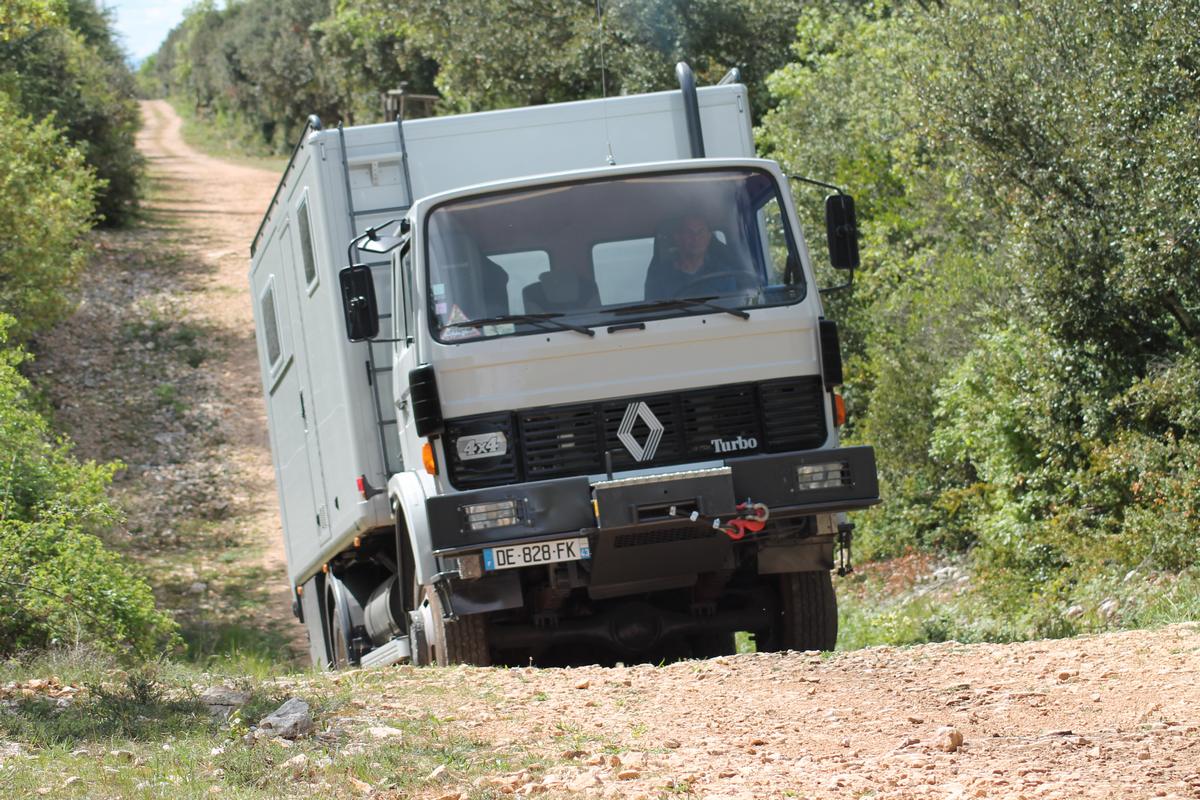 Nous sommes, aujourd’hui, libérés de toutes contraintes professionnelles et pensons profiter de ce temps libre pour découvrir de nouveaux horizons. Dans ce but nous avons aménagé une cellule en panneau de type Polyfond sur un camion Renault type 110/150 version 4x4 de 1989.