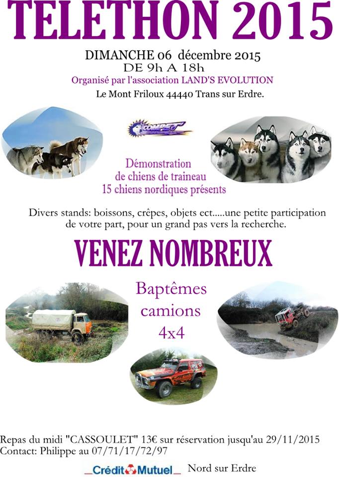Au téléthon 2014 nous avons été dépassé par le nombre de gens qui voulais monter dans nos bahu, du coup n'étant que 2 encore cette année, nous recherchons d'autre chauffeurs et leurs monture pour venir s'éclater avec nous sur un site de 7 hectares ou ce mele, zone maraicage, zone trial, foret etc.