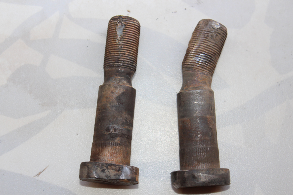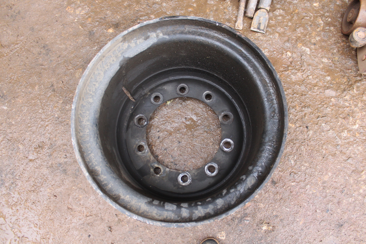 Quelque 2000km plus loin nous avons eu le coup de la jante de la roue arrière droite dont les noix se sont dévissées toutes seules en roulant. On n'a pas d'explication, mais le fait est que la jante est foutue (voir photos ci-dessous) suite aux vibrations et efforts subis. Des vis qui servent à fixer la jante sur le tambour de frein ont également souffert avec les mouvements induits par les vibrations, et ne tiennent plus (elle tournent quand on veux dévisser la noix). Bref, impossible de démonter la roue et pour ce faire, il a fallut dégommer deux noix au chalumeau !