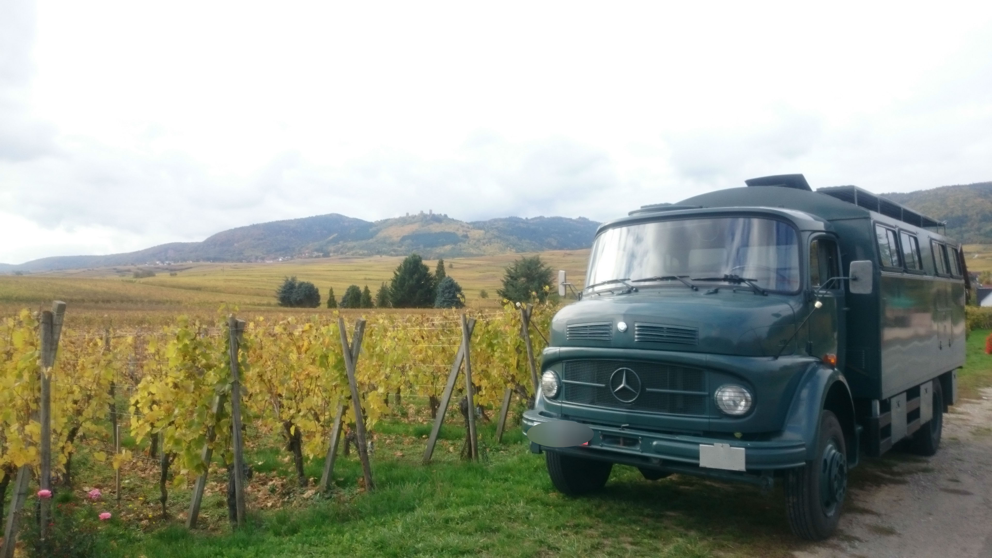La magie opère dès qu'on le regarde. Ce n'est pourtant qu'un tas de ferraille, mais ce truc dégage quelque chose. Un sourire, une bouille. Malgré son apparence militaire. C'est qu'il n'était pas fait pour ça ! Mais plutôt pour voyager. Ancien camion de l'armée allemande, radio et télécommunication, nous l'avons extirpé d'une sieste, qui a duré quatre années. Ca va, il était au chaud. Il n'a du coup pas pris une ride, et est d'ailleurs très sain. Quand nous sommes allé le voir la première fois, nous n'en revenions pas ! On ne s'attendais pas à venir voir un camion aussi propre. Le fait que ces camions, spécifiquement ceux-ci, B.G.S (radio et télécommunication) ont été stockés dans des hangars fermés, isolés et chauffés pendant leurs jeunesses à l'armée n'y sont pas pour rien. Pourquoi tant de précautions me direz-vous ? Simplement pour garder les composant électriques et électronique liés aux radios et télécommunications en parfait état.