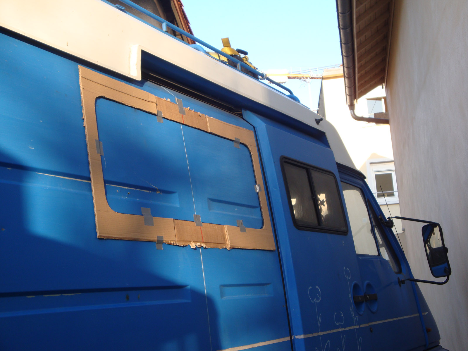 ...Tiens justement eux ont un ex-minibus mercedes sur lequel ils veulent re-tôler certaines fenêtres car il y en a trop pour pouvoir avoir une isolation efficace :mrgreen:
