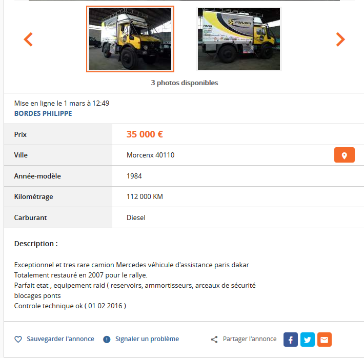 Re: Unimog 1700l vehicule assistance Paris Dakar
