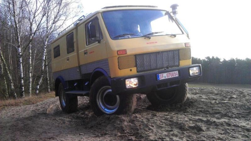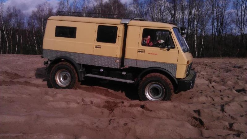 UNIMOG-Technik und dem vom VW LT stammenden Fahrerhaus