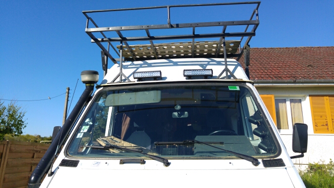Les rampes sont installées au dessus du pare brise. Le faisceau électrique passe dans la "capucine" et le montant de pare brise. L'alimentation se fait via un relai/fusible.