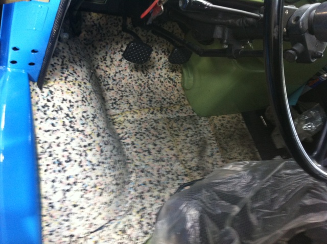 -Pour l'isolation phonique j ai mis une couche de 3 mm d un materiau "bitumeux" avec adhesif des deux coté , et j ai ajouté dessus une mousse phonique d environ 10 mm , je ne pouvais pas mettre plus epais au plancher et j ai fais pareil sur la cloison avant.