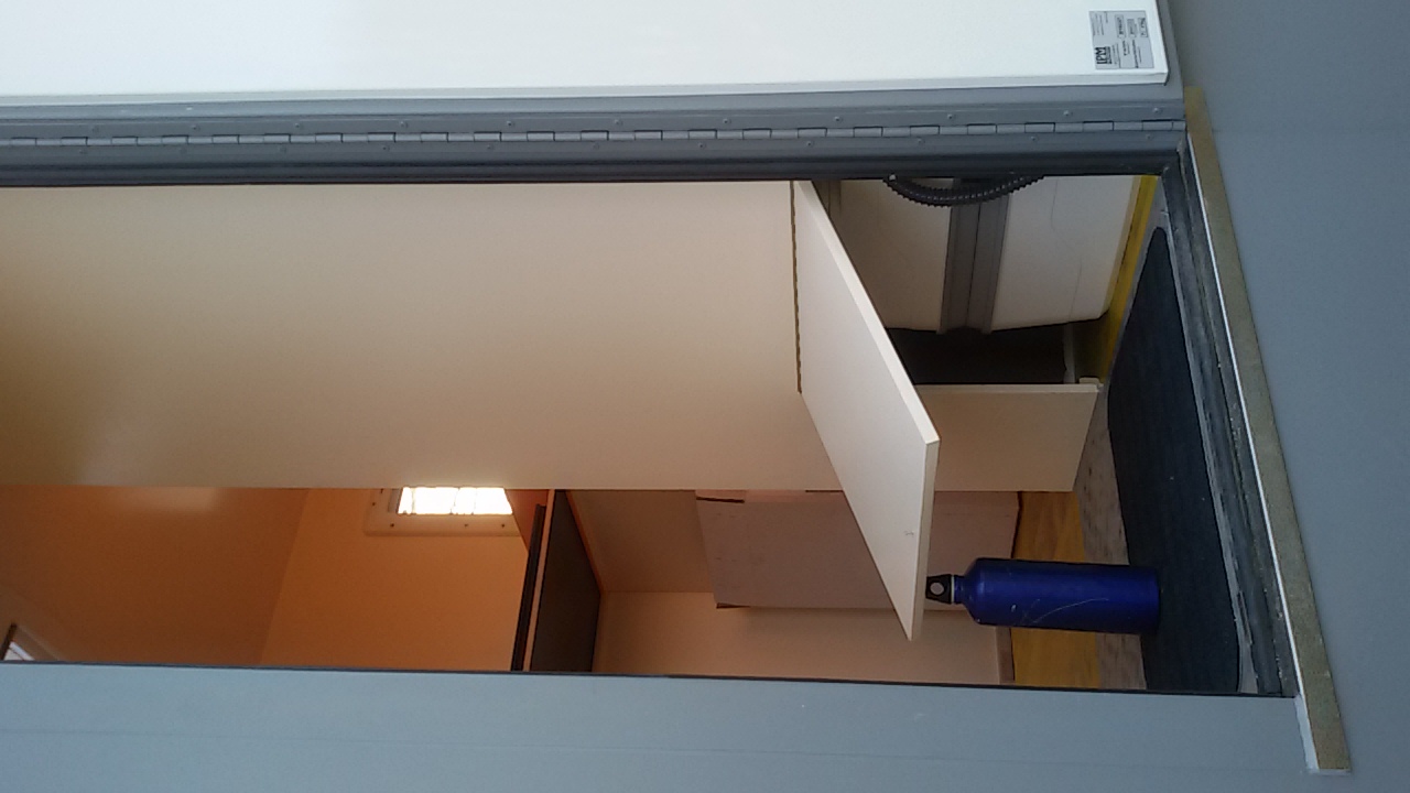 La porte est haute car il va y avoir un faux plancher a cette hauteur pour avoir de la place de rangement en soute, réservoir eau, batterie, chauffage ect