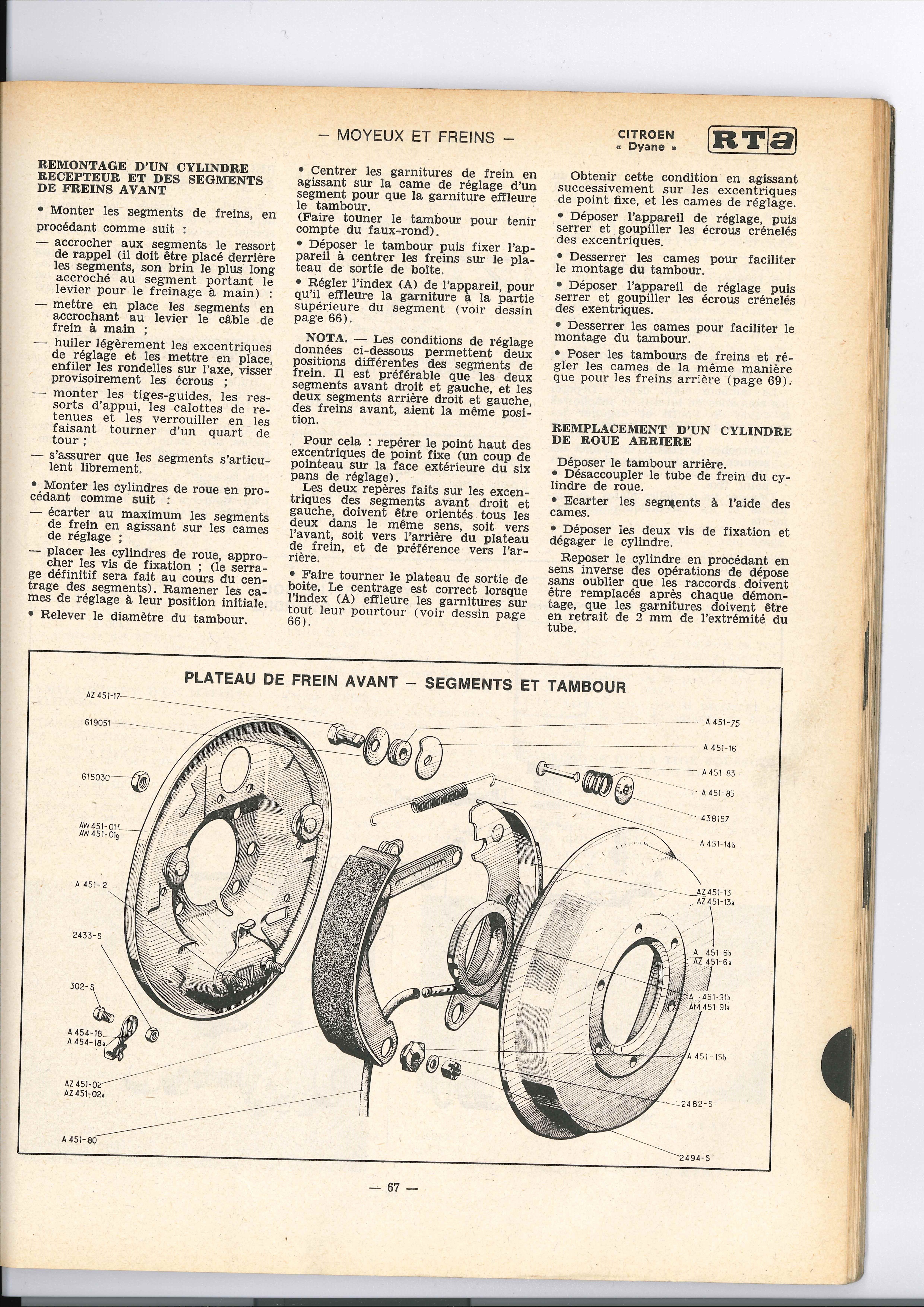 Un réglage parfait. C’est mettre à zéro le frein à main (levier de freins à main en buté sur le support de garnitures intérieur, pour cela dévisser la commande de réglage complètement (cela permet au démontage de sortir le câble facilement du levier de freins à main sur la garniture)