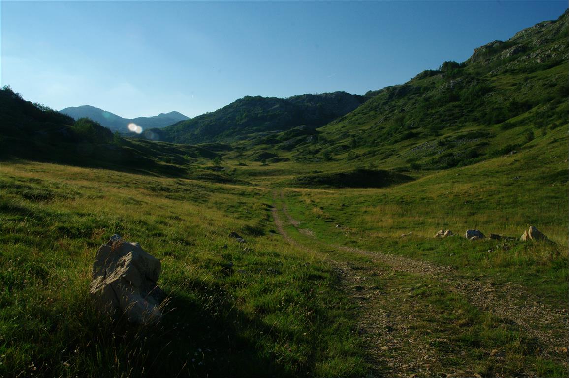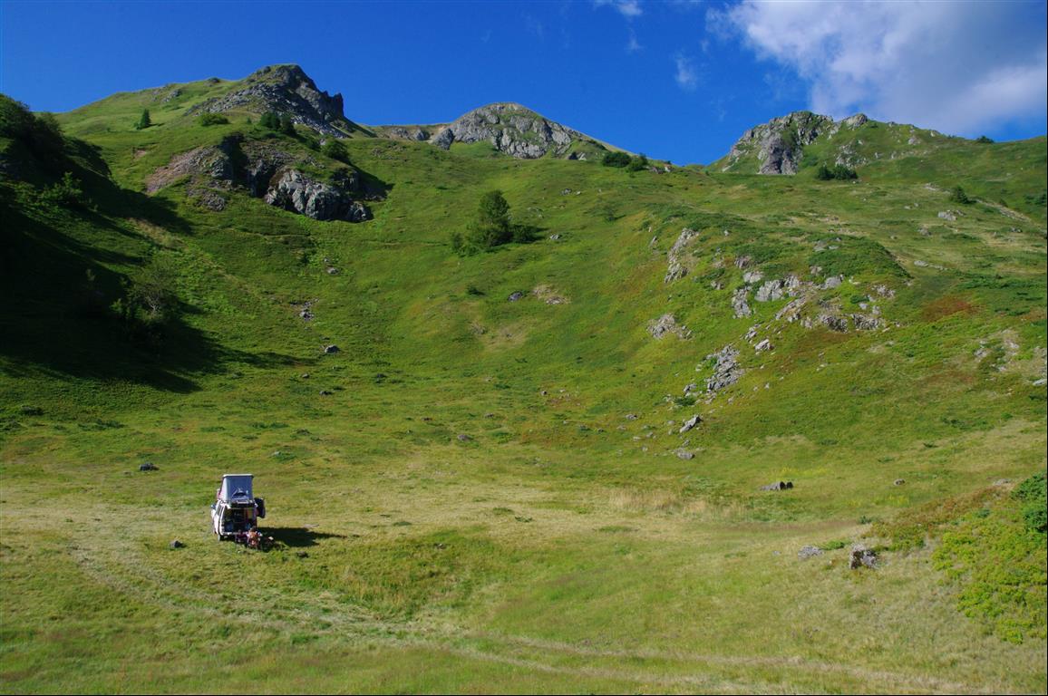 De ce fait on passe en quelques heures de piste des hauts plateaux entourés de montagnes pointues dans les Durmitor à des montagnes arrondies plafonnant à 2000m et offrant des grands espaces accessibles au dessus de 1800 (plus d'arbre) et donc des campements magiques...