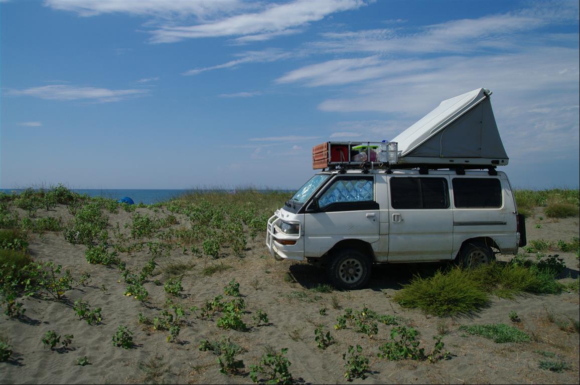 La mer est moins sauvage mais on le savait et on a quand même réussi a trouver 2 endroits libres ou nous avons pu poser l'asino (c'est le nom de notre minigros) en toute liberté. (merci les récits des copains et merci googlemap)