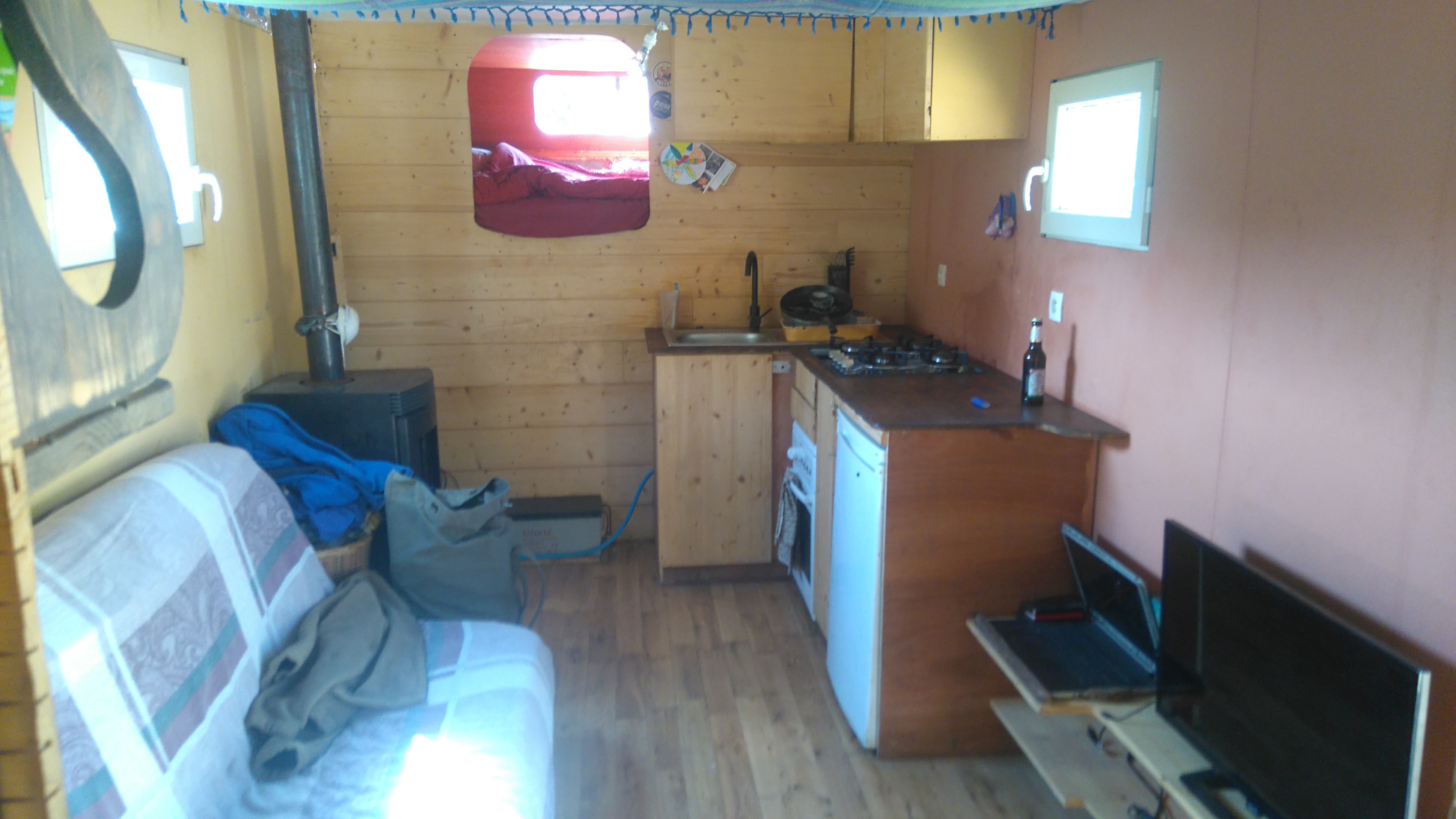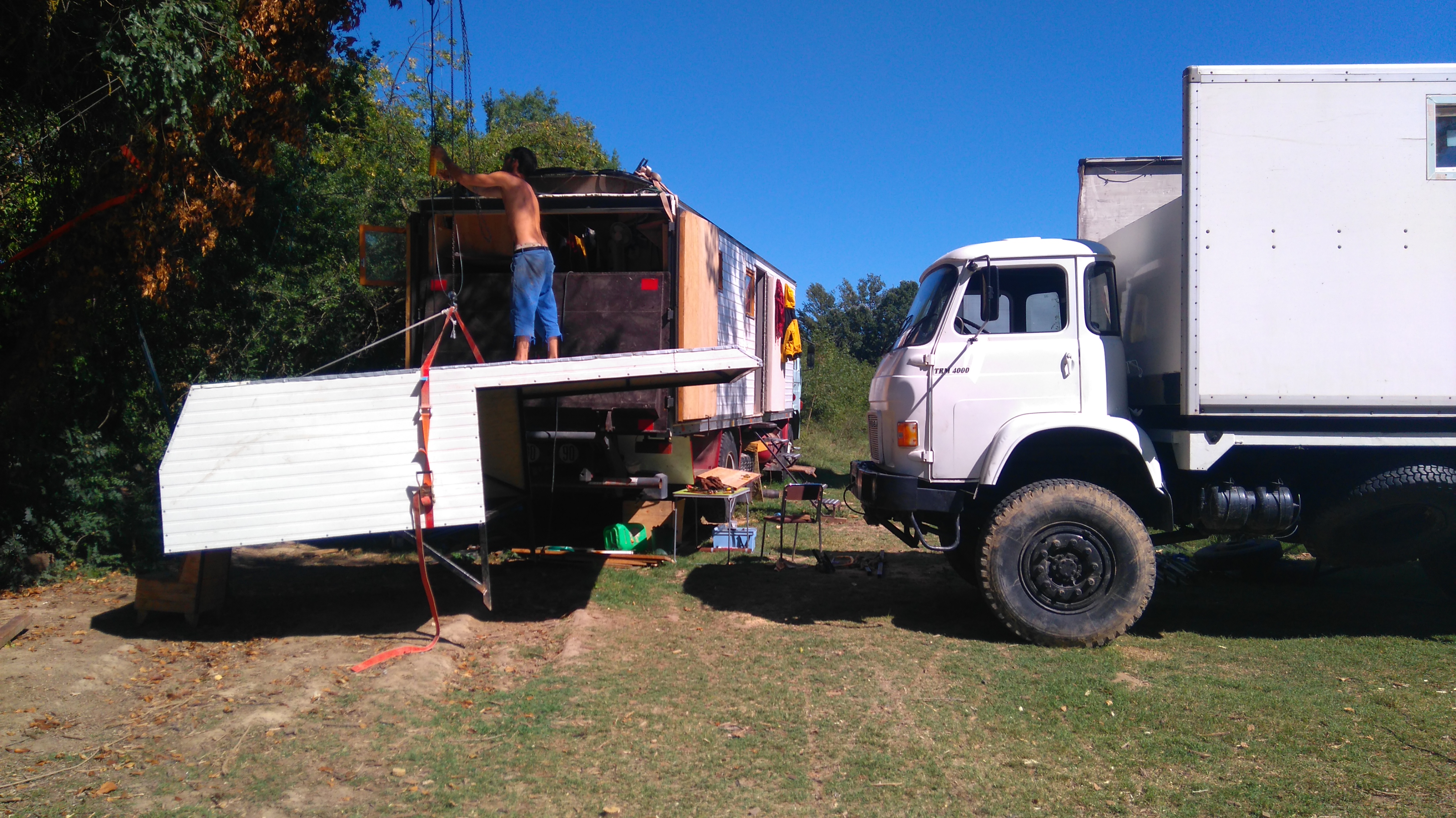 Du coup pour la bécane j'ai laissé 90 cm a l’arrière et on a installé un pti treuil électrique pour hisser la moto j'ai essayé avec un 125 ça ce faisait pas trop mal a voir avec un 600 xt qui pèse 50 kg de plus