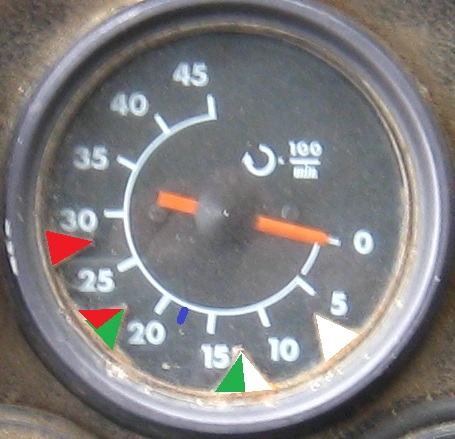 je fais appel a vous afin de re-colorier les 4 repères du compte-tours du TH1700, moteur MIDR 06.02.12 D, (puissance maxi à 2800 tr/min, couple maxi à 1800 tr/min cf. à son Manuel d'utilisation), actuellement en état "incognito" :