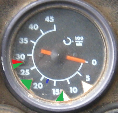 Oui c'est bien ça ! D'ailleurs, en dessous du repère, le ralenti est un peu bas et la cabine vibre.