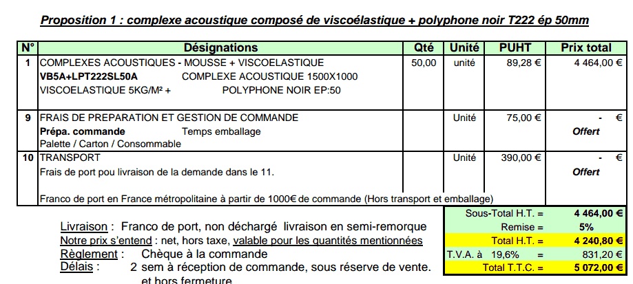 Bon c'est plus pour vous donner une idée des matériaux conseillés par la technico-commerciale.