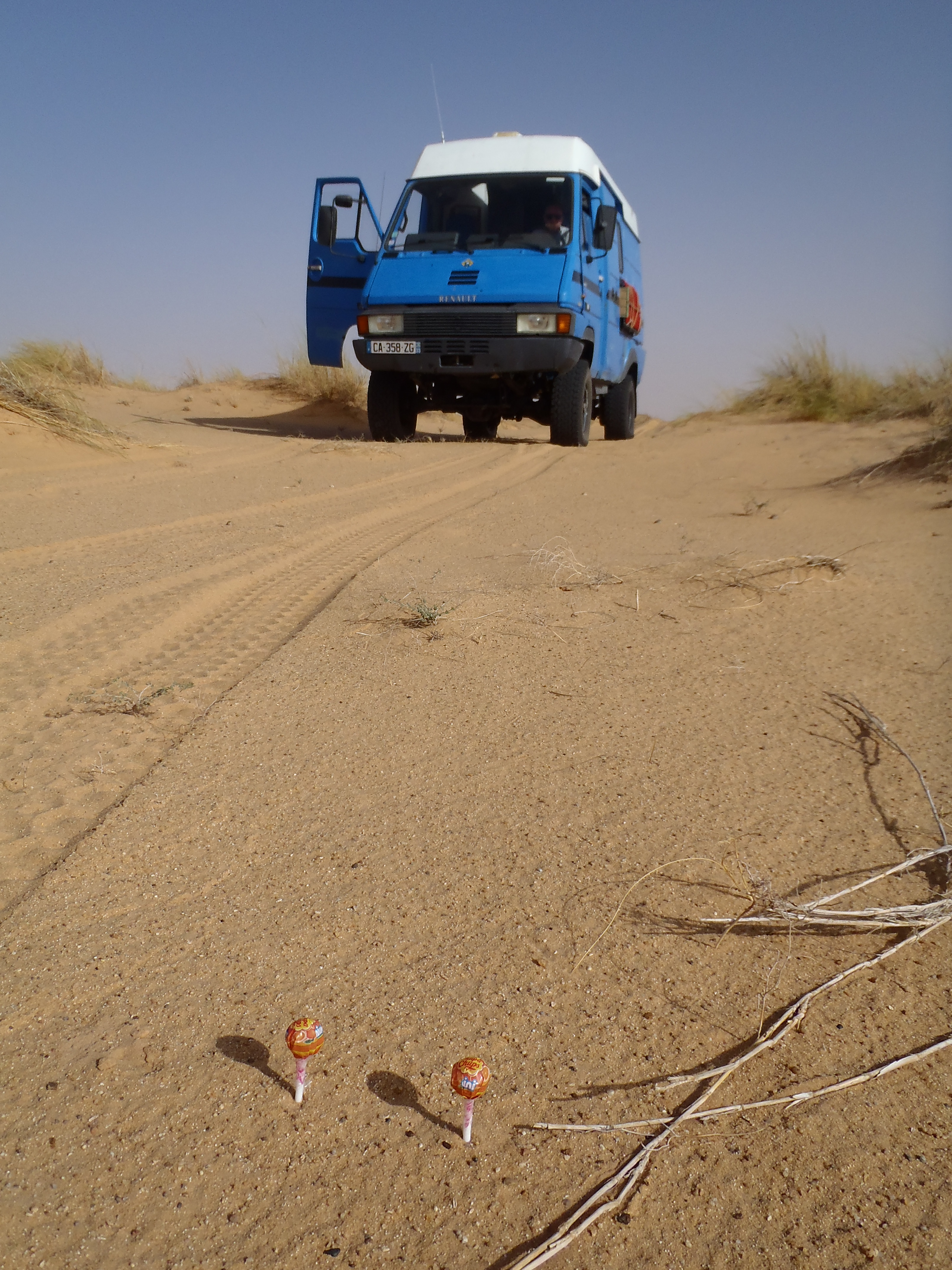 1er bivouac à Porto Rico , surprise on connait ce camion ! Ce véhicule est celui de Jacomo 32 et Françoise , ici, en grande discussion avec Yves et Chantal Nous avons fait d'autres rencontres en Mauritanie