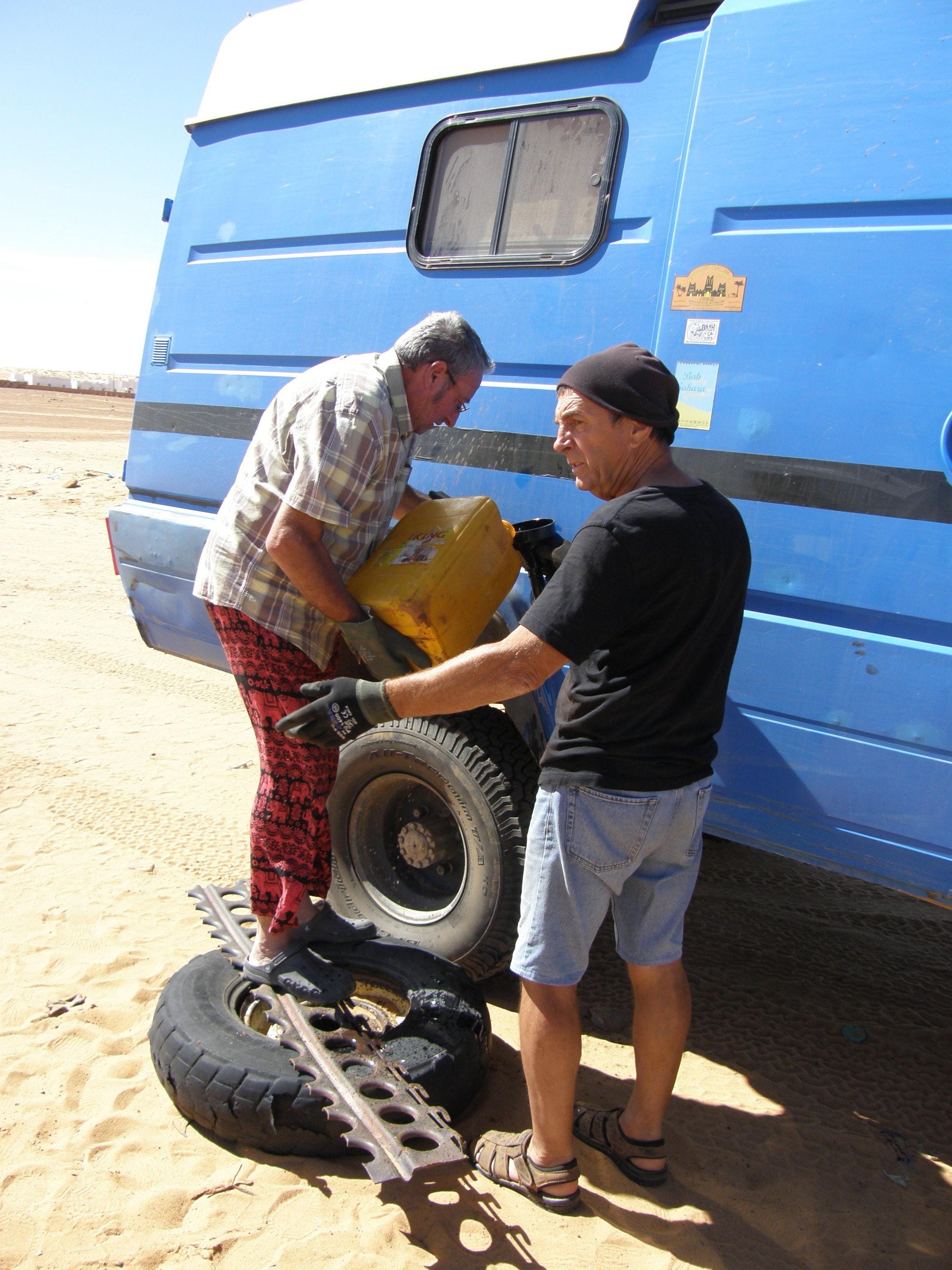 Panne de gazole à 30 km d' un point de ravitaillement Panne de liquide de refroidissement , ils n'avaient plus d'eau et avaient déjà vidangé les véhicules transportés Des pleins mémorables à Ouadanne