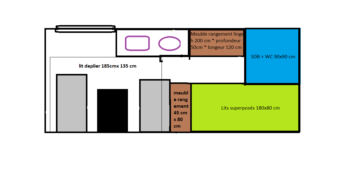 Nous avons apparemment le même empattement long (3,84), nous avons aménagé 4 couchages sans trop de difficulté, 2 superposés à l’arrière gauche et lit de dînette (transformation en 10 minute max).