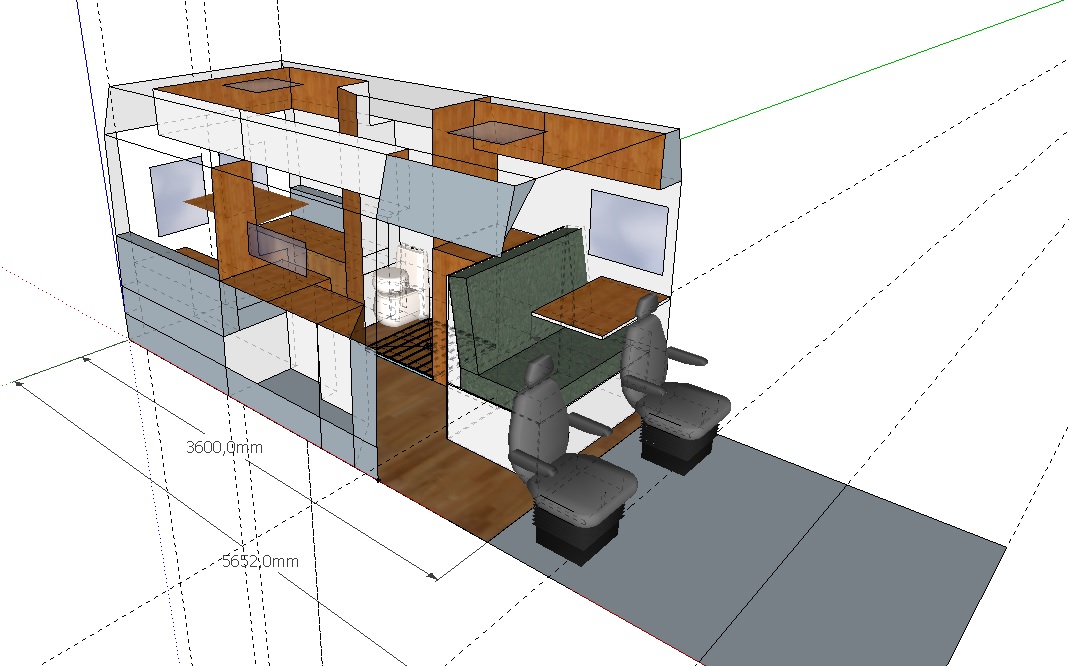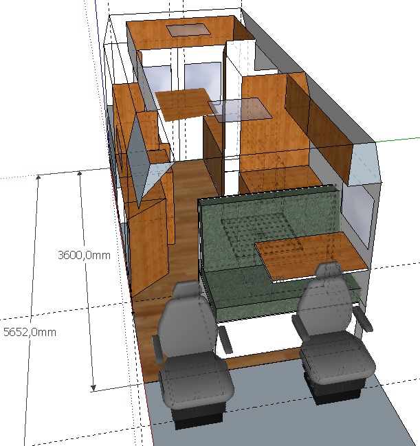 la partie arrière fait dînette, grand lit et coffre si le véhicule est utilisé tout les jours ou en véhicule de loisir.