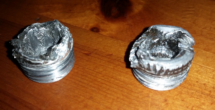 la révision commence par les vidanges et les deux bouchons en alu de la boite de tranfert ont été plus que malmenés...