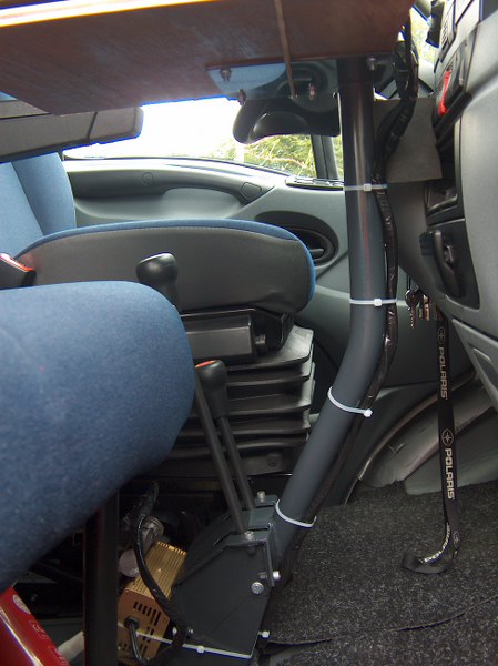 Fabrication d'un support fixé sur le boitier de commande transfert avec tablette pour recevoir le pc. L'écran de la caméra de recul est lui fixé juste au dessus de la radio quand au GPS sa place est sur le tableau de bord.