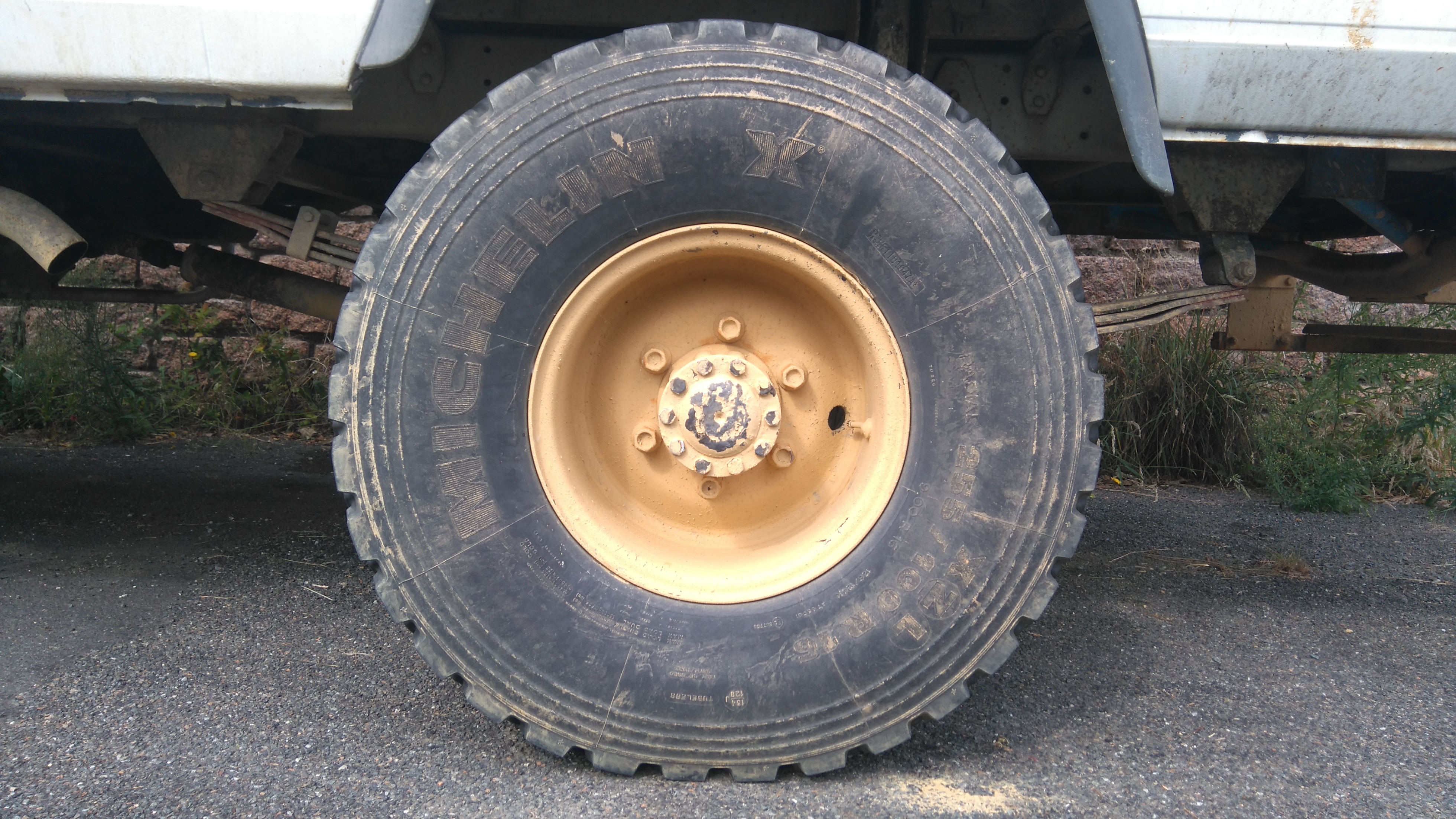De magnifiques xzl 255/100R16 , fraîchement livrés, sur des jantes cerclées...