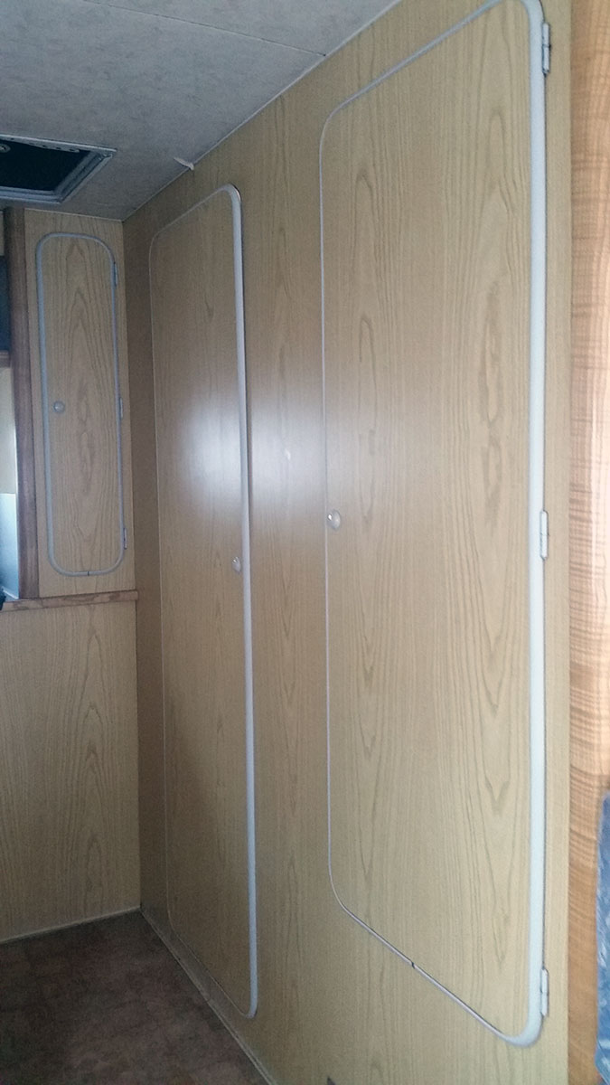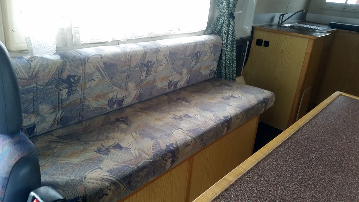 Enfin, côté intérieur, il est bien sûr à rafraîchir après 20 ans de bons services. Les joints dans la douche par exemple sont à refaire. A nouveau, absolument rien de rédhibitoire! J'avais prévu de mon côté si je l'achetais de refaire tout l'intérieur. Je n'aurais gardé que le lit pavillon ;) De la même façon, la CG prévoit 5 personnes, mais en 98, on ne connaissait pas les ceintures 3 points. Et vu que je serais parti avec 1 ou 2 enfants en bas âge avec sièges auto, j'aurais fait installé une banquette moderne.