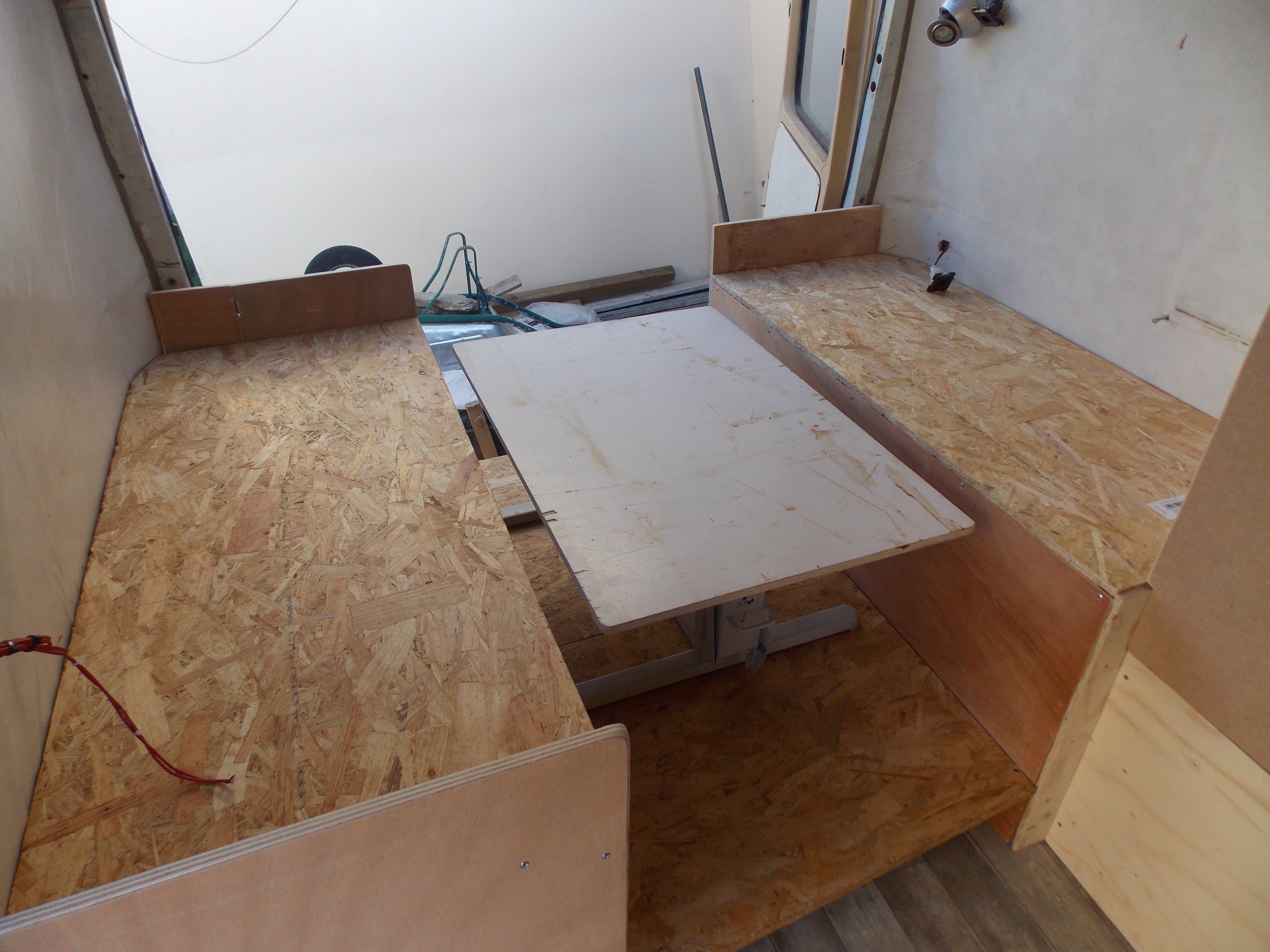 A mettre le coffre pour la batterie auxiliaire,finir électricité( convertisseur,mise en place du boîtier à fusibles etc......)