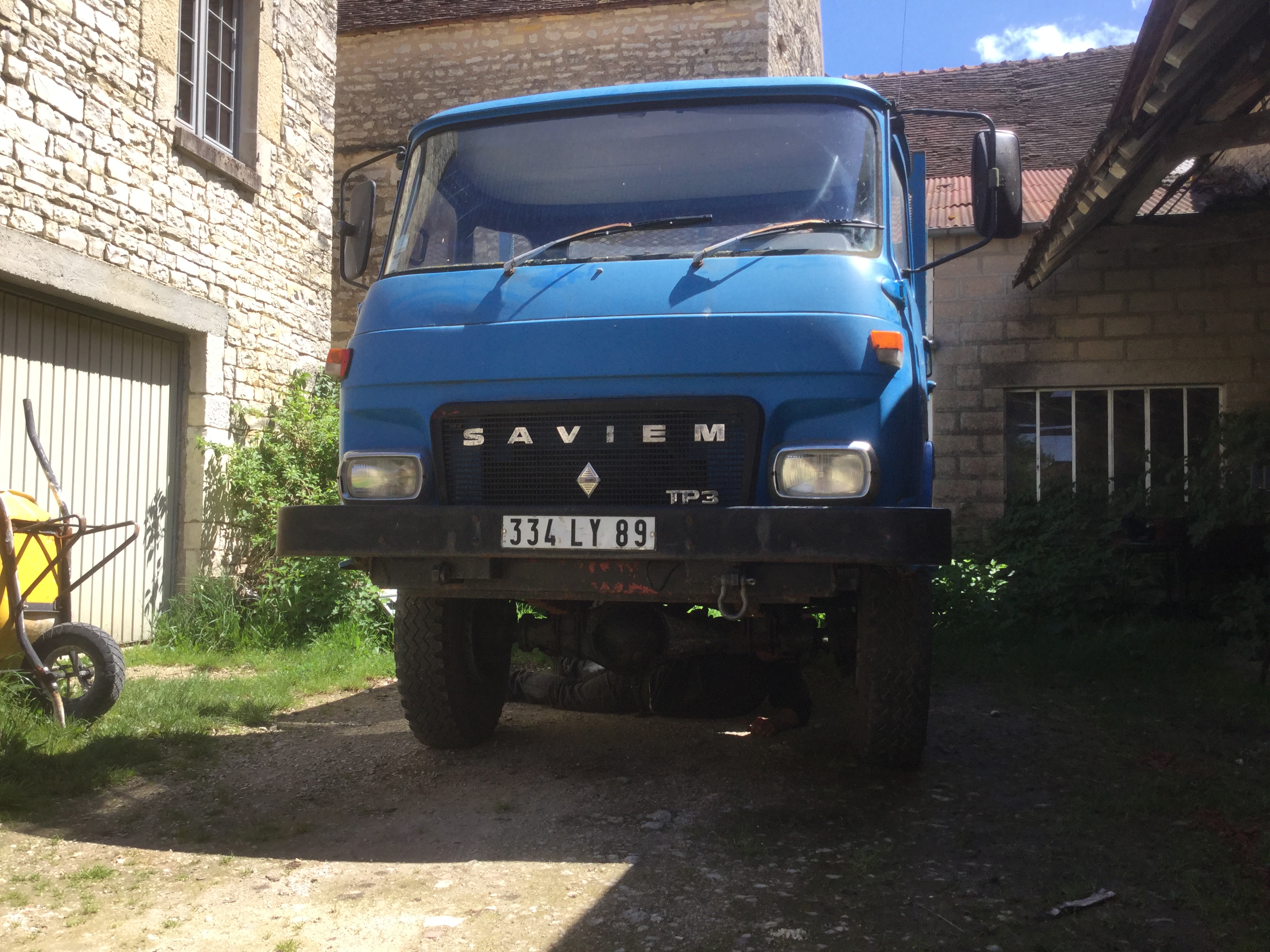 L'autre le rouge est un pl ,avec papiers ,qui n'a pas roulé depuis dix ans en essence ancien de l'armée convertit en plateau porte boisson ds le 93 pour un négociant en boissons , il était sur le coin coin Ilya environ 6 mois , du coup châssis sain , cabine mouais ( saviem quoi)et plus de roue ,vendu cet hiver , ah ! Le con ! Du coup chargement avec un mini fenwick équipé d'ailleurs du moteur essence de chez saviem.