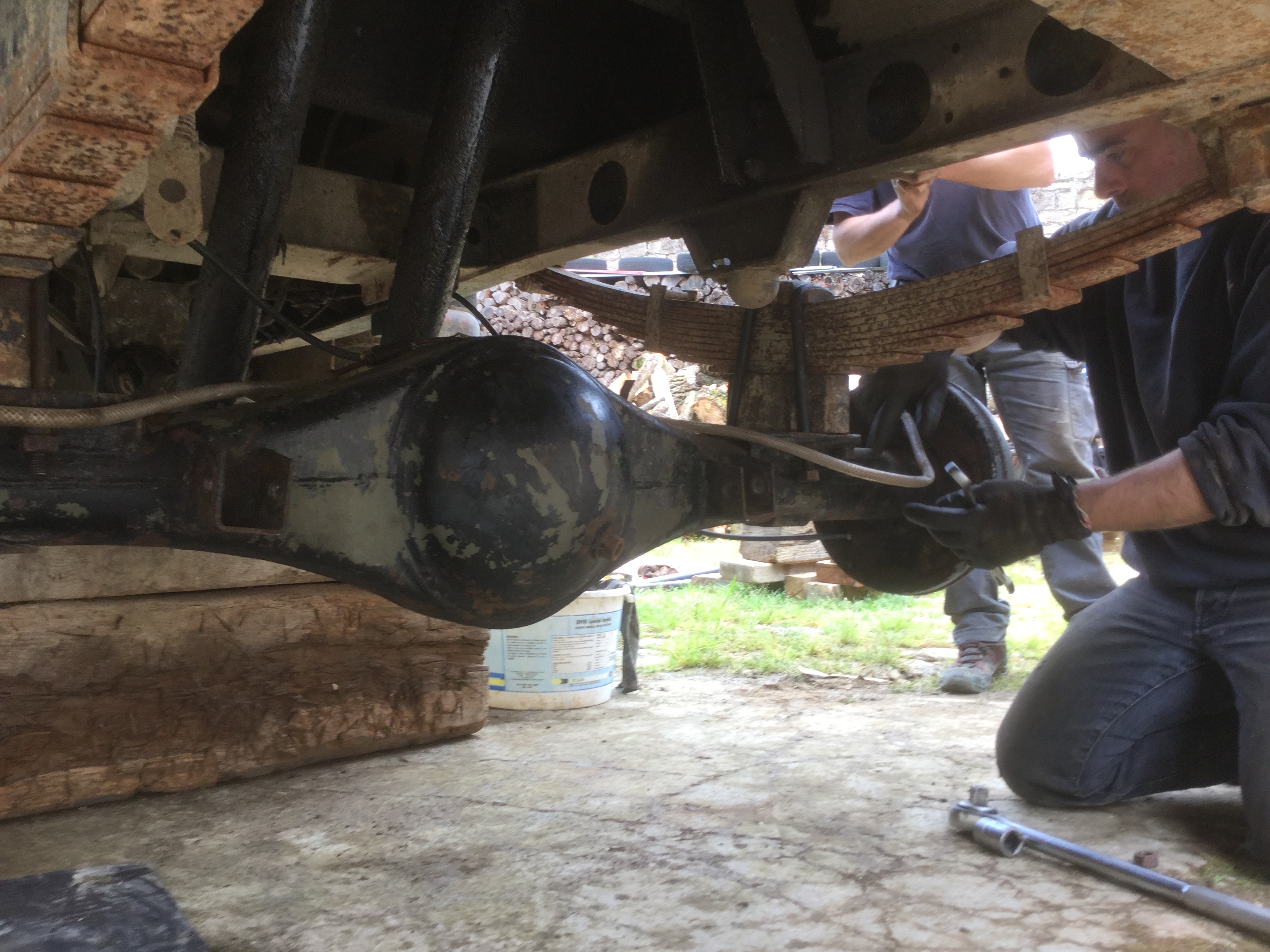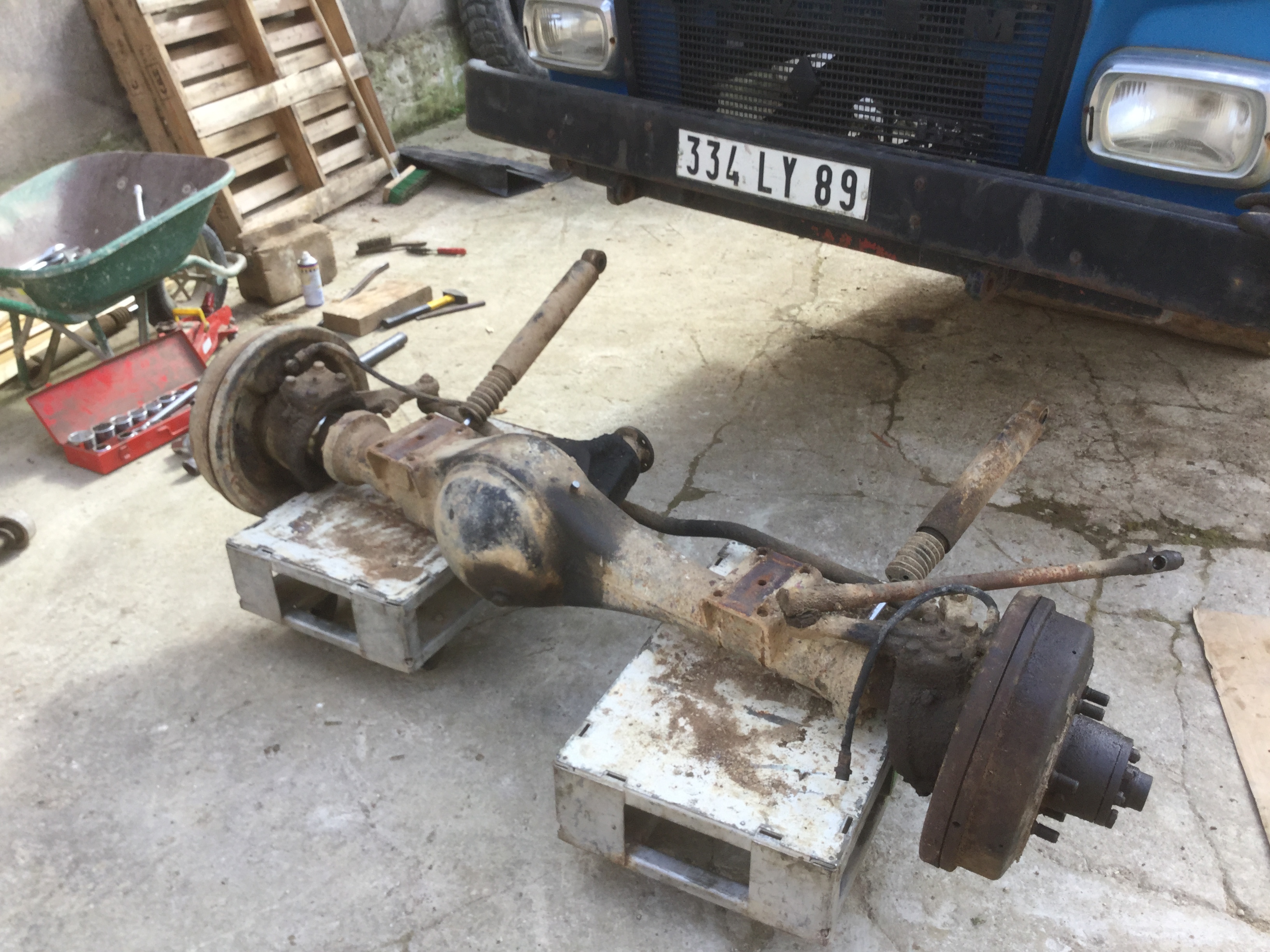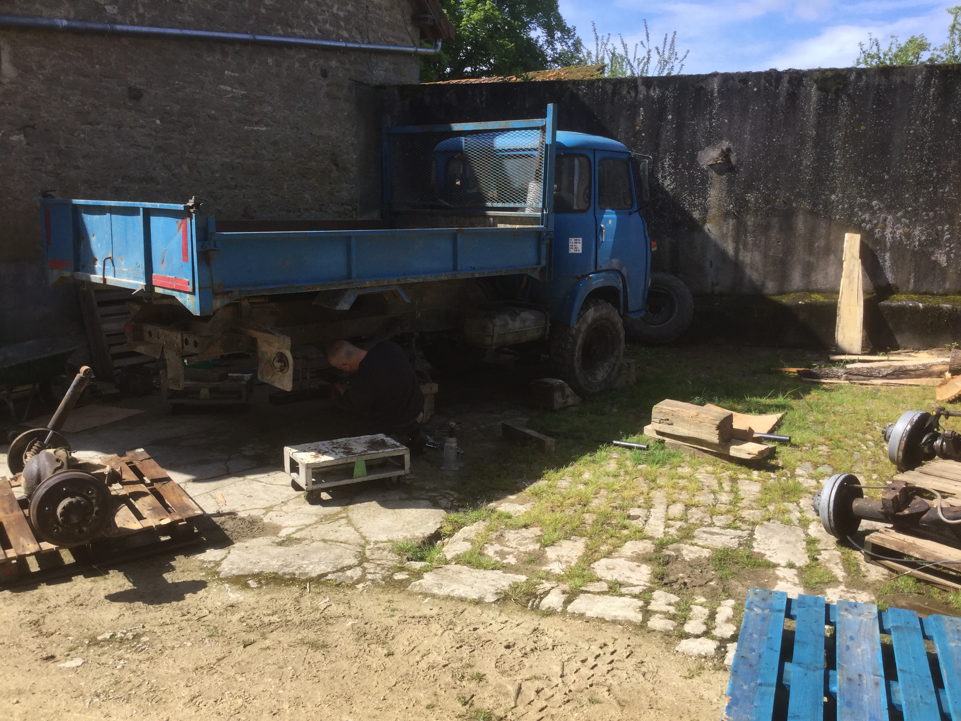 Auparavant j'avais déjà démonté les deux ponts sur mon gendarme et remonté deux ponts que j'avais d'avance pour pouvoir le bouger ,il avait les freins neufs et ponts révisés avec durites et câbles de freins à main neufs ,donc pourquoi s'emmerder c'était la solution la plus rapide