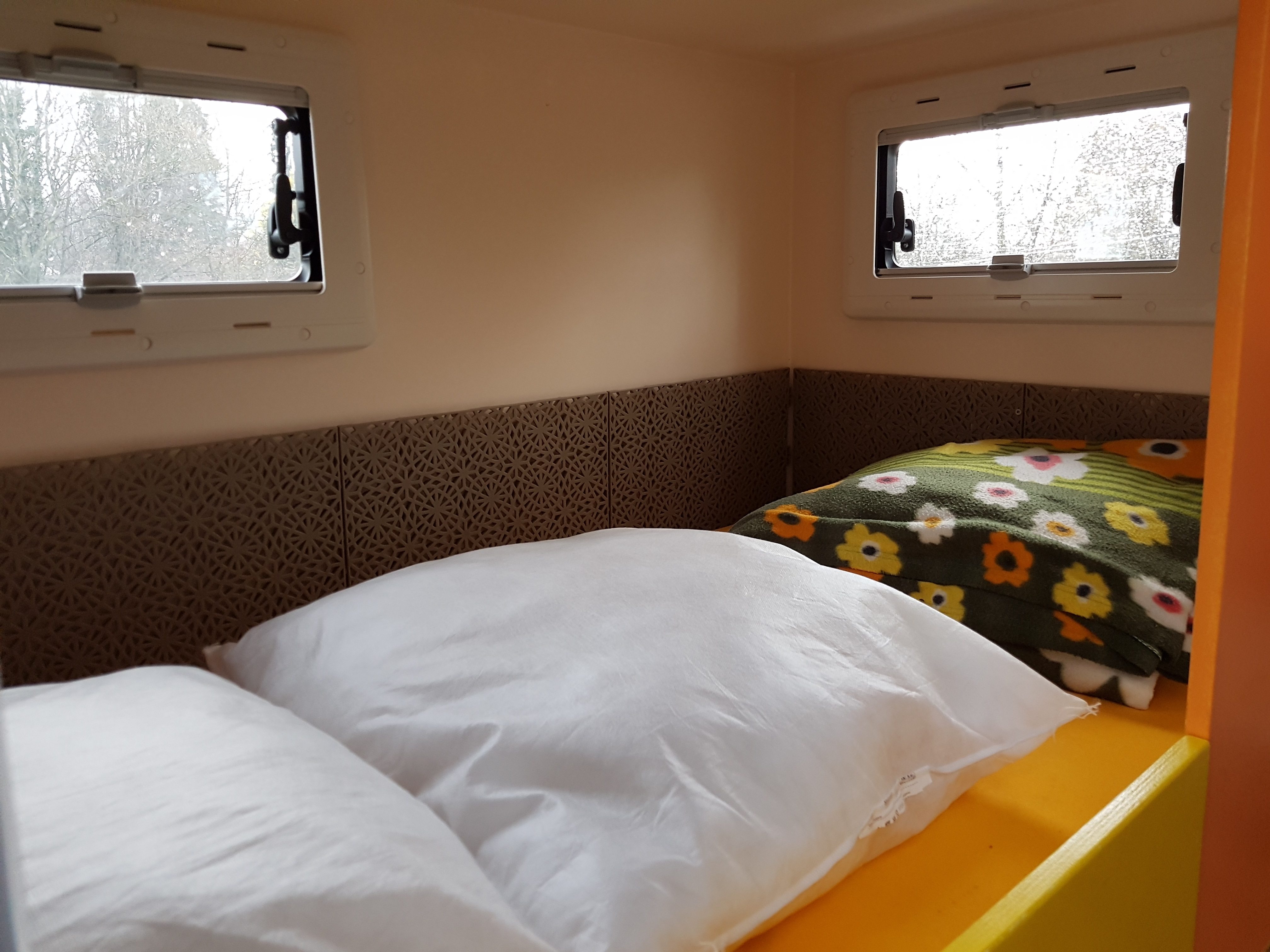 J'ai dessiné la cellule selon ce que j'avais envie est besoin, c'est un mix de mes différents camping car, est je l'ai fait fabriqué chez IPM MONDIA avec pour seul ouverture la porte, car pour le reste il peuvent aussi le faire, mais cela chiffre très vite... elle m'est revenue au environ de 10'000 € HT avec la peinture extérieure.