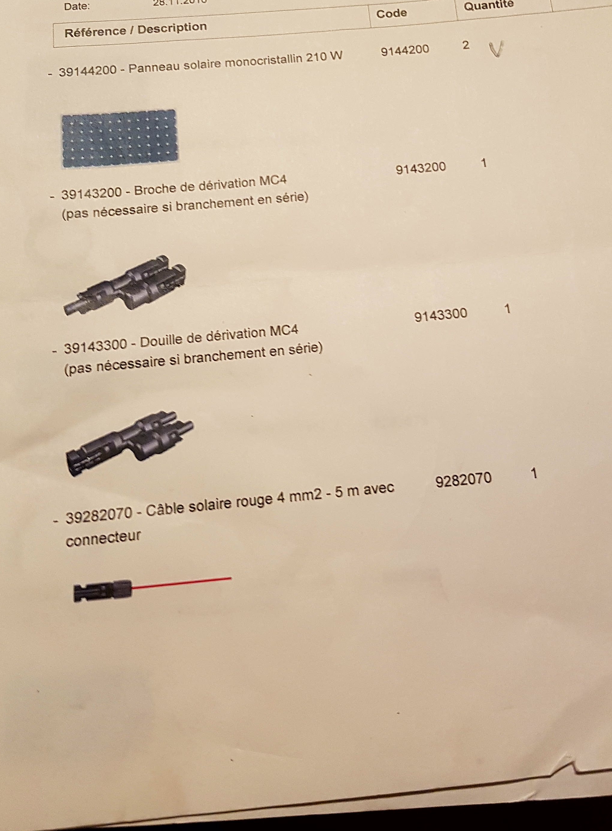 Si dessous le matériel que j'ai utiliser pour l'instalation solaire: