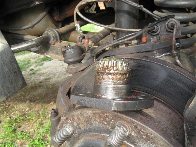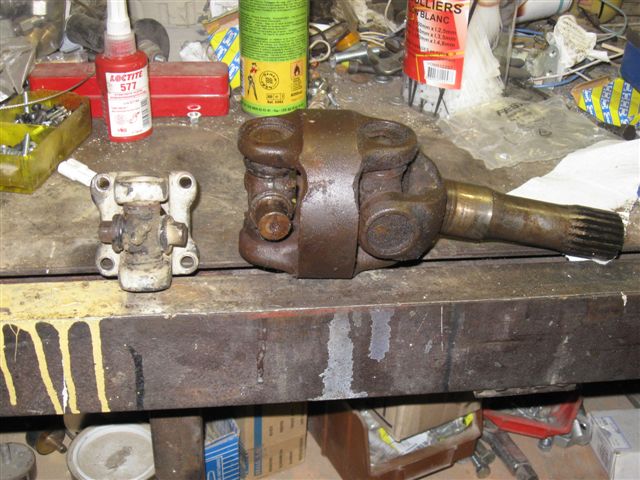 Pour mon premier passage au ct avec le brutt, il a été recalé pour un manque de témoin de liquide de frein et un jeu important dans le pivot droit. Sur les 4x4 à pont avant rigide il y a des cales pour ajuster au mieux les roulements coniques, mais pas de cales sur le brimont. Donc direction un tourneur pour lui faire enlever 1mm sur la partie en contact avec le pont. ensuite j'ai fait faire des cales de 2/10ème et j'ai remonté le tout avec 4 cales et vérification du jeu, puis j'ai enlevé une autre cale jusqu'à ce qu'il n'y ait plus de jeu. Résultat plus aucun jeu à la contre-visite. Une autre solution aurait été d'extraire le roulement et insérer une cale sous le roulement mais trop compliqué et risque d'abimer le roulement.