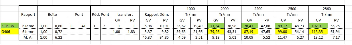G406 prise de force ??? - 6 rapports de 7.15 => 0.72 ==> :idea: :D
