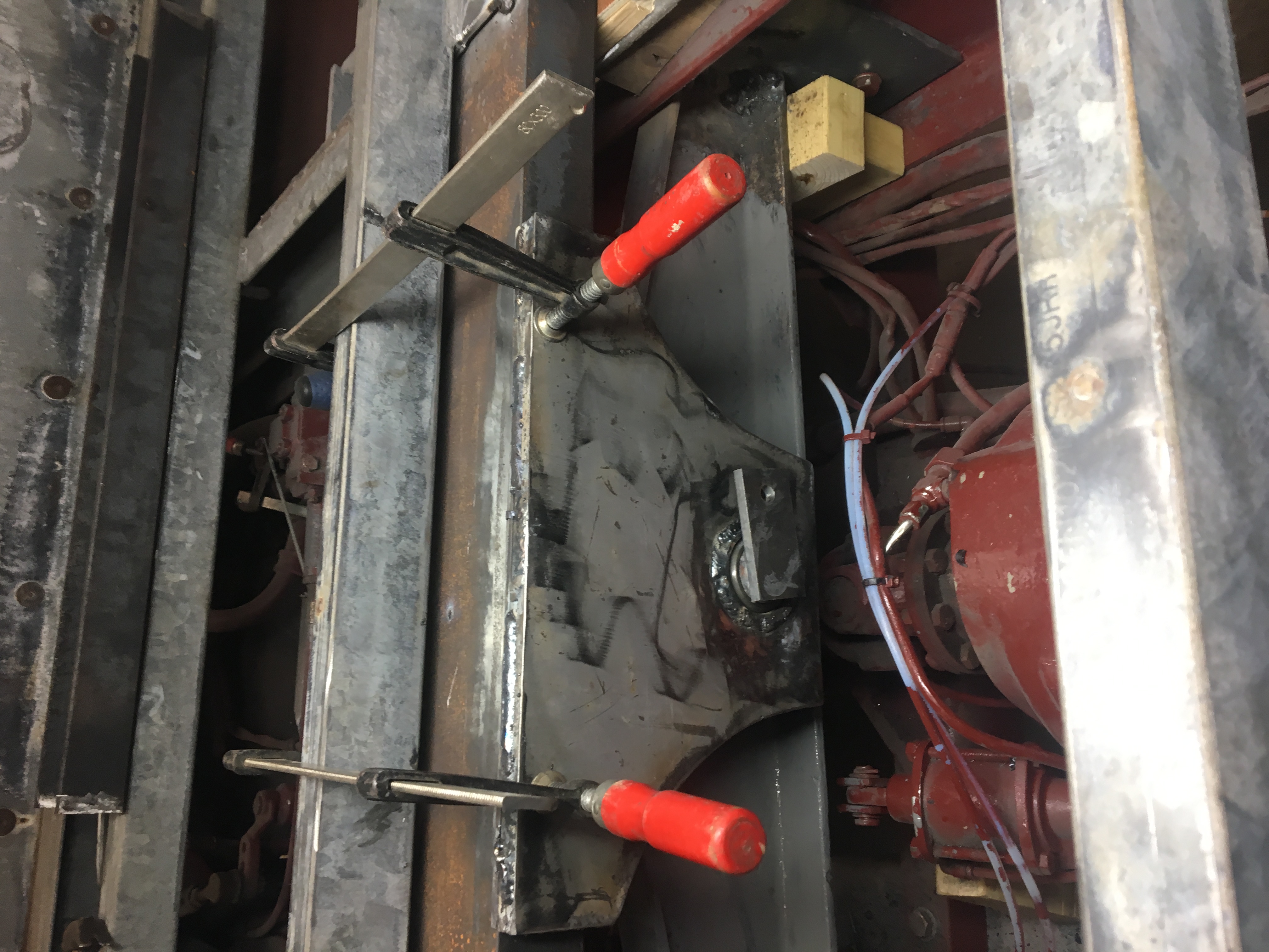 Soudage d anneaux + manilles pour descendre et monter les roues de secours avec un petit palan bien rangé dans les futur coffres