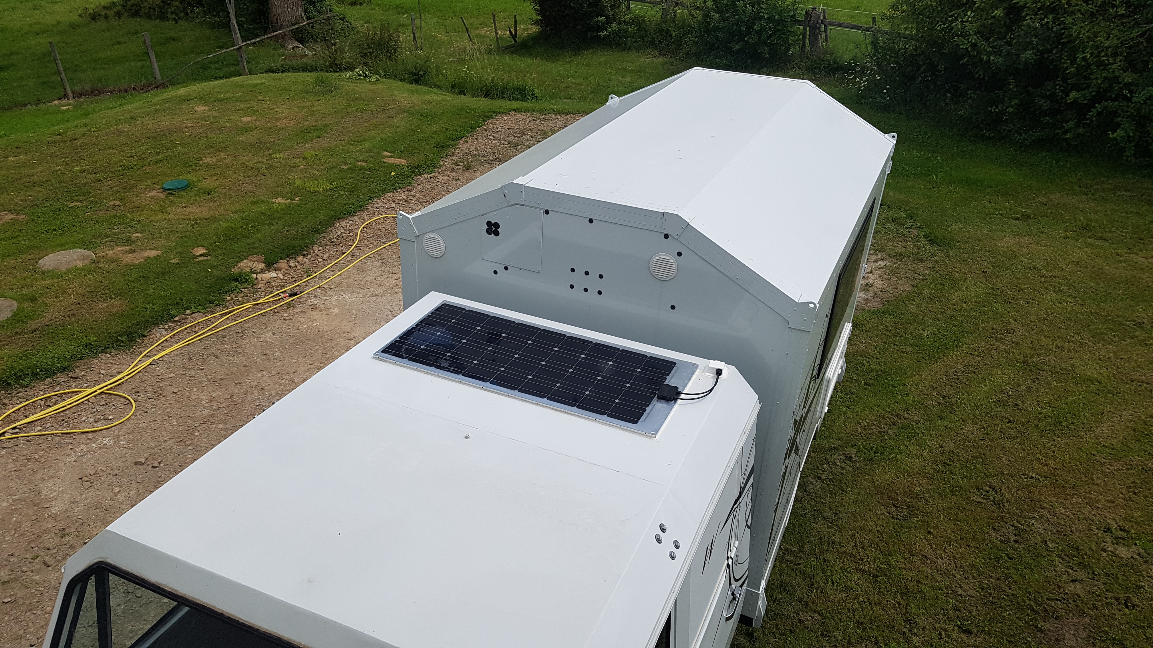 Le but serait d'avoir 1 seul panneau sur le toit, pour une installation un peu surdimmensionnée en captage garantissant une bonne charge au nord, et autorisant l'ajout d'une 2nde batterie au sud par exemple.