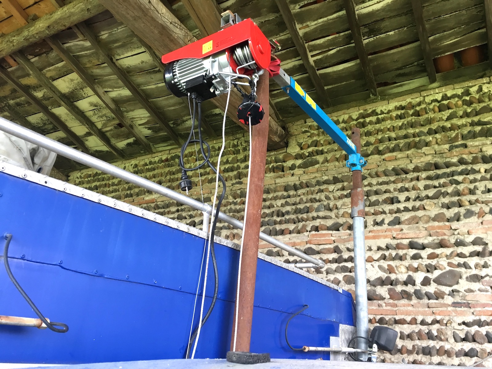 Donc en installant un bon vérin, ça irait beaucoup mieux, mais en attendant je vous livre une autre façon de procéder, treuil, petit palan et bonne barre, sangle.