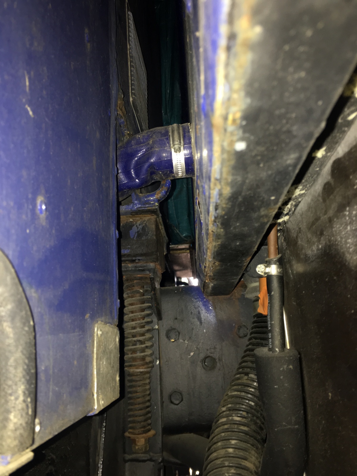 La première étape est bien sûr de désolidariser la cabine... Mouarf... Bon courage pour les deux écrous arrières bien planquées que seul une clef de 19 raccourcie à quelques cm aura été capable de venir à bout.