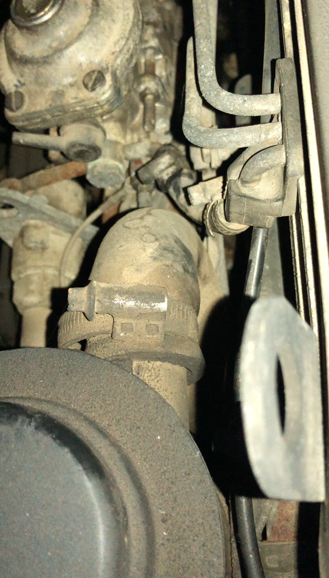 Y'a aussi cette durite-là, qui a fondu à cause je suppose de la température élevée des gaz d'échappement sortis de cette fuite :
