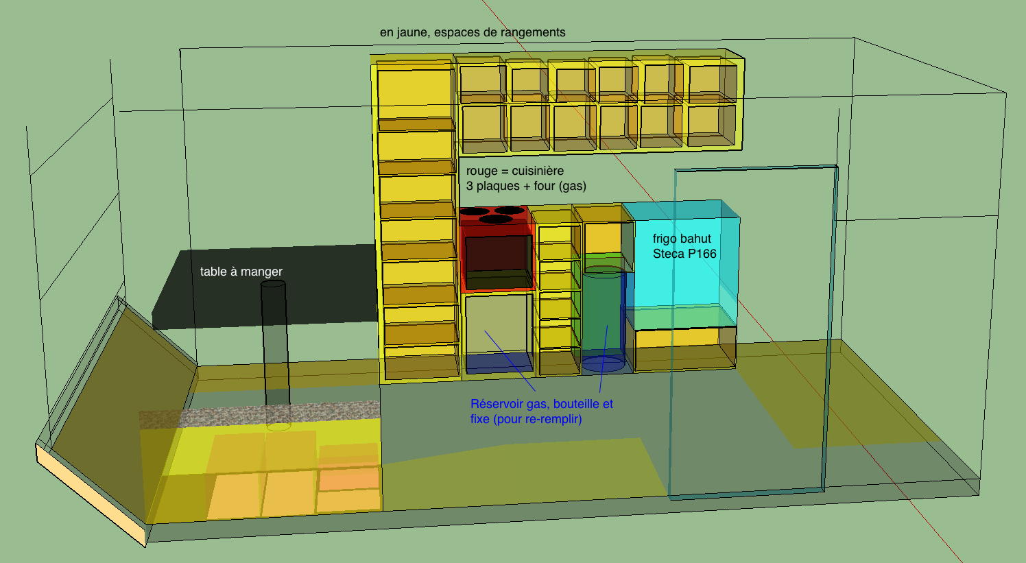 Un des points qui ne me plaît pas trop dans mon plan, c'est d'avoir le frigo et le gaz tout proche...ça fait peur non ?