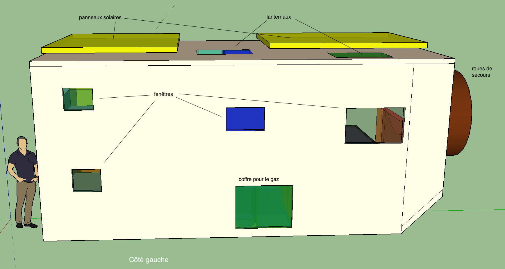 Pour le biais arrière, plus que pour le look, c’est pour ne pas trop frotter. Pas encore certain qu’on le fera, mais comme on a besoin de 4 places en cabine, on risque bien de finir avec un camion de 8m en tout => ce sera peut-être nécessaire (ou pas). On verra cela plus tard. En attendant, je dessine les plans avec cette contrainte, si elle disparait, ce ne sera pas dur de trouver une utilité au volume gagné (l’inverse étant plus compliqué).