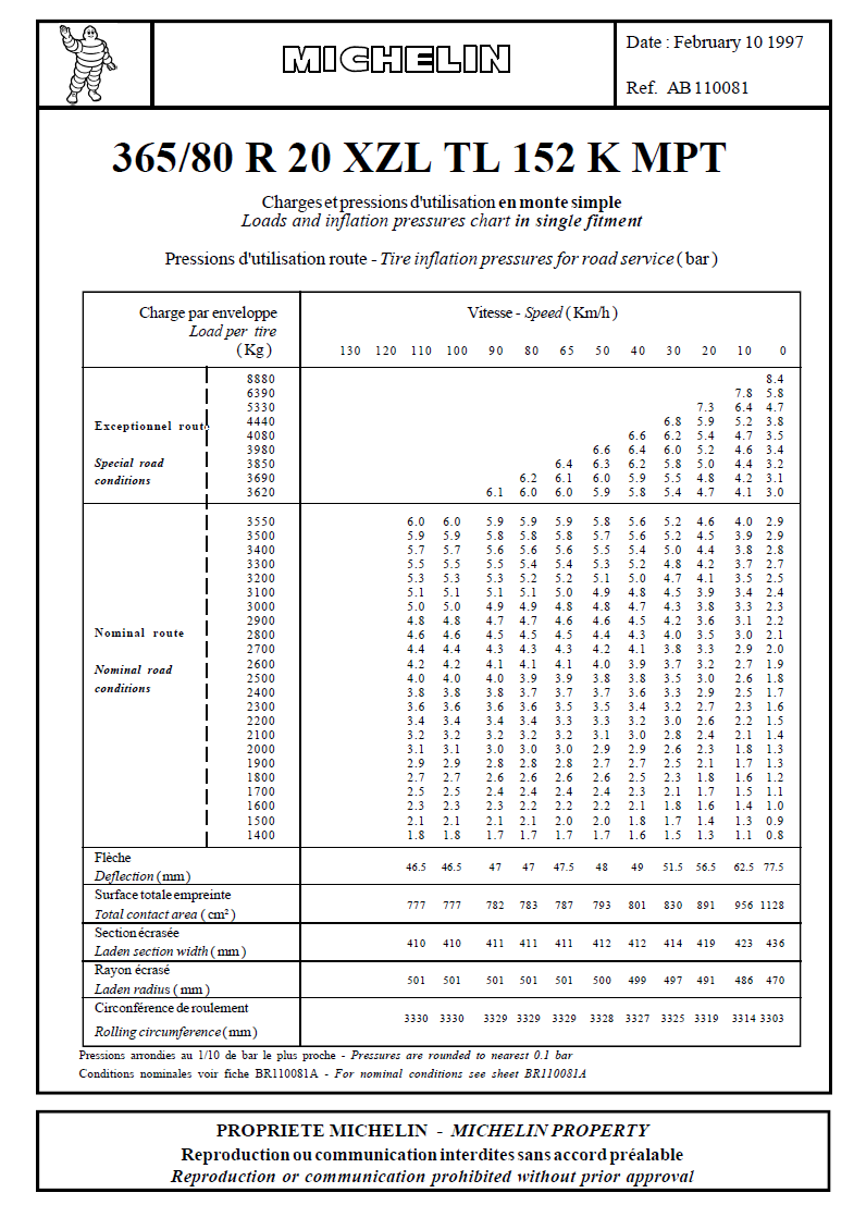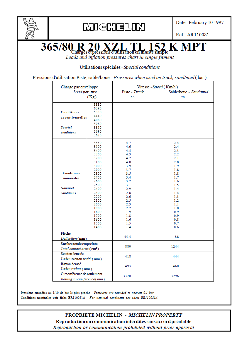Ce sont des 335/80 R20 en 12,5, il me semble que les utilisateurs d'Unimog ont souvent ces pneus...