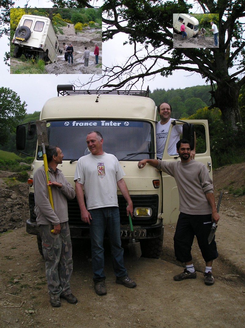 Podium, en fait le vainqueur c'est le TP3 de ex-président DD (photo avec Marc en Guest-Star) Si vous zoomez sur la photo vous verrez la terre sur le pare choc et l'eau qui coule à l'intérieur sur le pare brise c'était la réserve d'eau propre de DD.