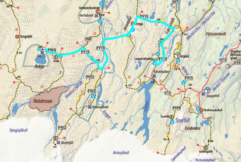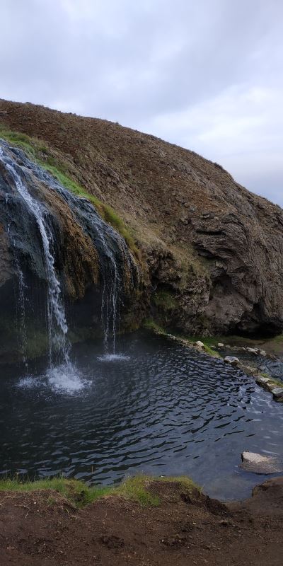 Une fois retourné au véhicule, nous reprenons la route direction la F910 Est. Nous avons déjà fait ces pistes, mais comme pour la F88, je trouve que celle-ci se font dégradées depuis 3 ans. Elles ne présentent aucune difficulté, mais ne sont pas très agréable à rouler. Heureusement, les paysages traversés compensent ces désagréments. Nous décidons de faire une surprise aux enfants, et de prolonger notre route jusqu’à Laugarvalladalur et son hotpot avec sa cascade d’eau chaude.
