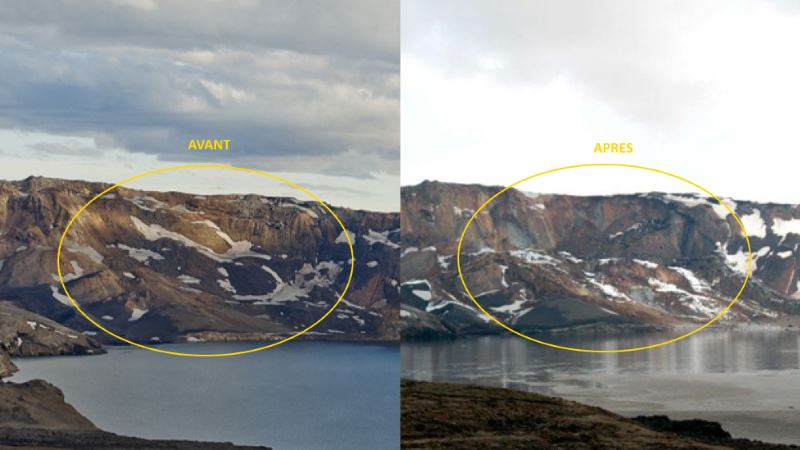 On peut se recouvrir le corps d’argile comme au « blue Lagon » mais en version pleine nature. C’est un vrai moment de bonheur et de détente, surtout que nous sommes seul pendant un bon moment. En 2015, lors de notre précédant voyage l’accès au Viti était très déconseillé, voir interdit. En 2014, un très important glissement de terrain a eu lieu sur les rives du lac Öskjuvatn. Environ 250 millions de m3 de terres et de roches ont dévalé dans le lac, soit équivalent de 250 000 semi-remorques. Une vague de plusieurs dizaines de haut a traversé le lac, jusqu’à se déverser dans le Viti. Le niveau d’eau dans le lac Öskjuvatn a augmenté de deux mètres après cet incident. En plus, en 2015, j’avais préféré faire demi-tour avec le jeune de nos enfants, le temps c’était très rapidement dégradé et la zone était encore complétement enneigé. Je m’étais promis de revenir profiter des eaux du Viti, c’est chose faite.
