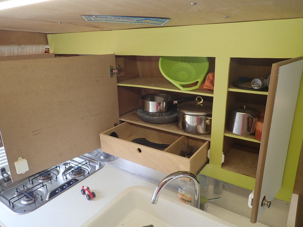 - Réservoir inox eau potable 170 litres (sur mesure), invisible intégrer dans le meuble cuisine (hors gel), 2 types de remplissage soit pression du réseau, soit par jerrican, vanne de vidange