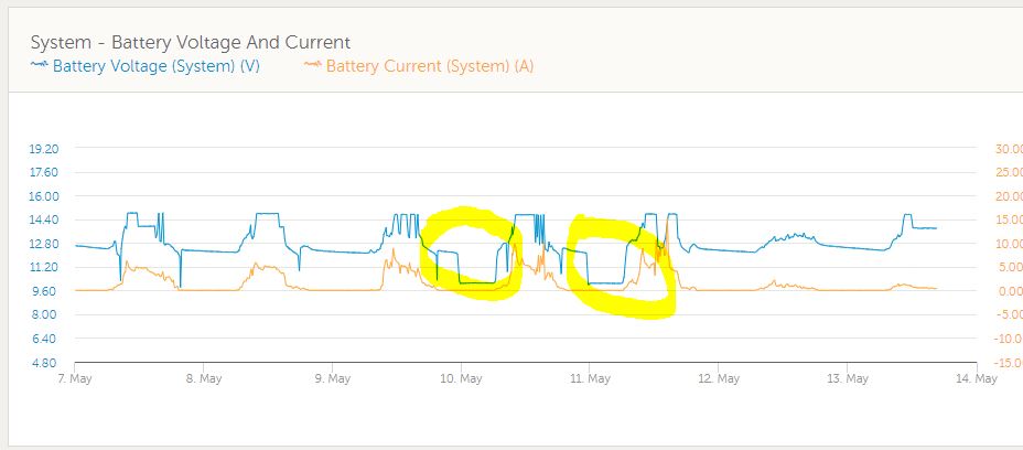 Et vous l’avez vu vous-même : 1 grosse décharge profonde ayant descendu le voltage à 22 volts pendant 5 heures