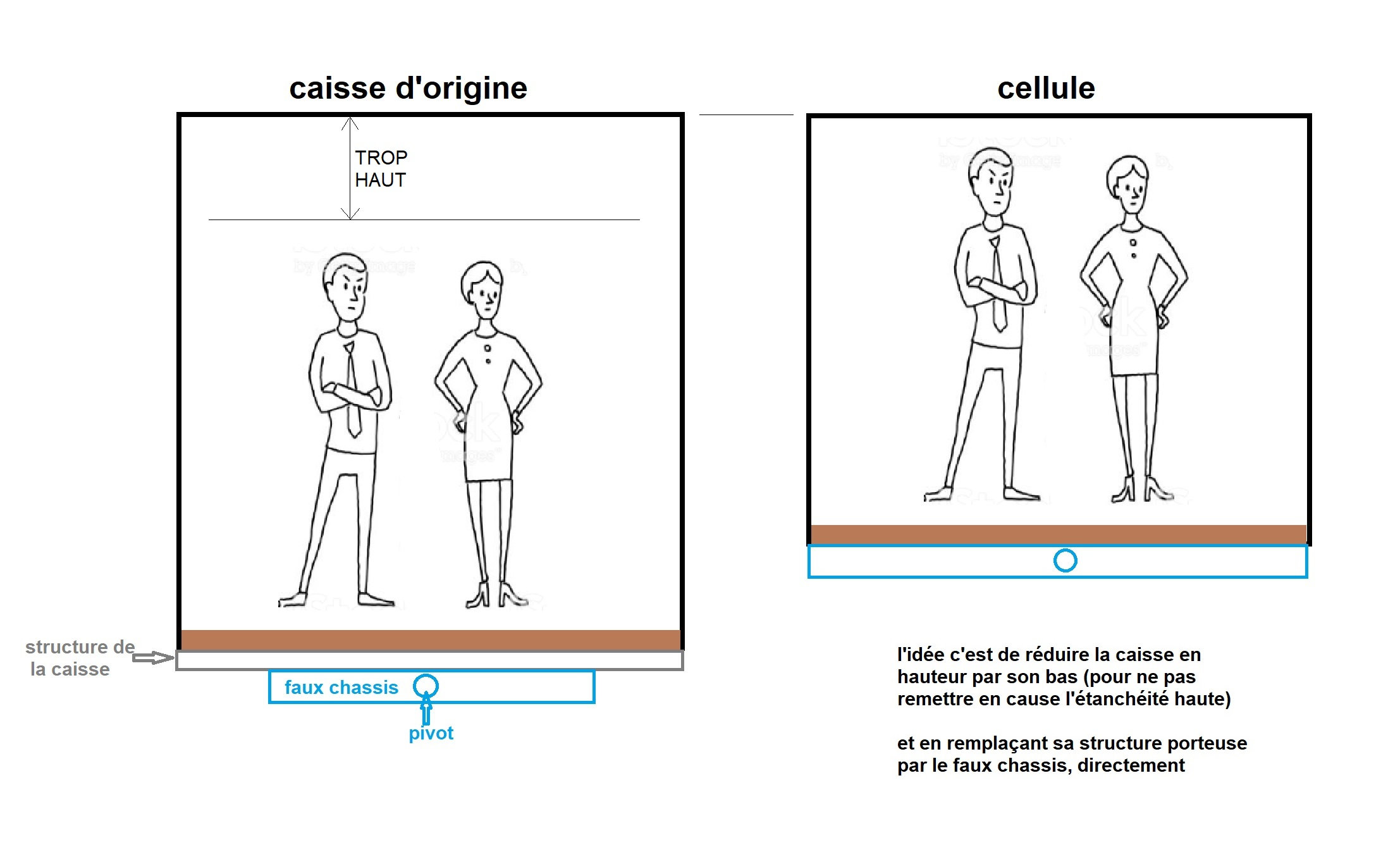 on peut gagner des cm en faisant le faux châssis de la largeur de la cellule et en vissant directement le plancher dessus