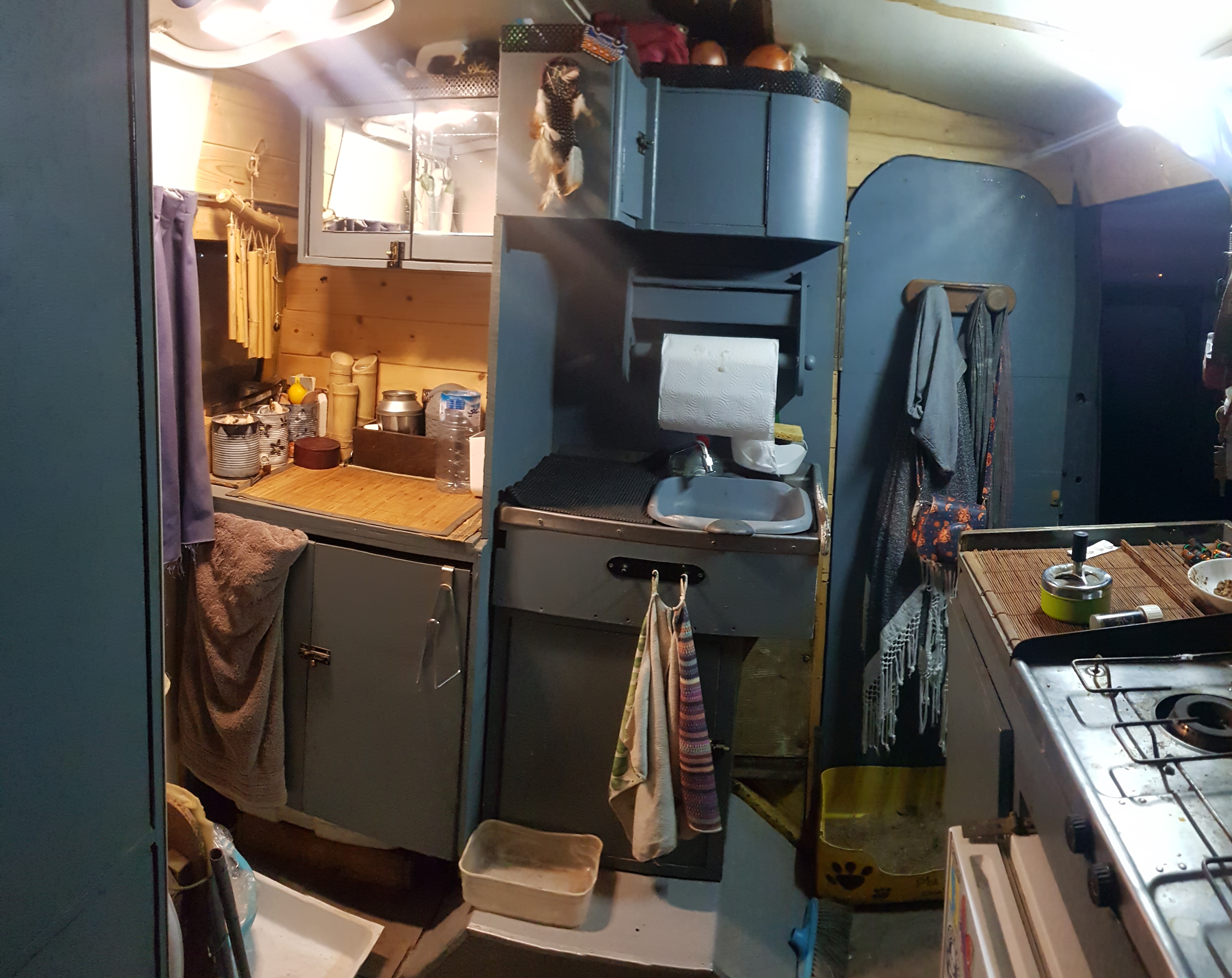 Dedans il manque juste le chauffe eau, on en a pas l'utilité mais ça coute pas cher et il serai simple a installer sur ce camion vu sa disposition..
